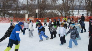 現知内小学校は、旧知内小学校(1879(明治12)年~)と中の川小学校(1892(明治25)年~)の2つの学校が統合し、2008(平成20)年4月、現在地に新校舎とともに開校しました。その後、2023(令和5)年4月に湯ノ里小学校、2025(令和7)年4月に涌元小学校と統合し、今年度より町内で唯一の小学校として新たな歴史を刻み始めました。