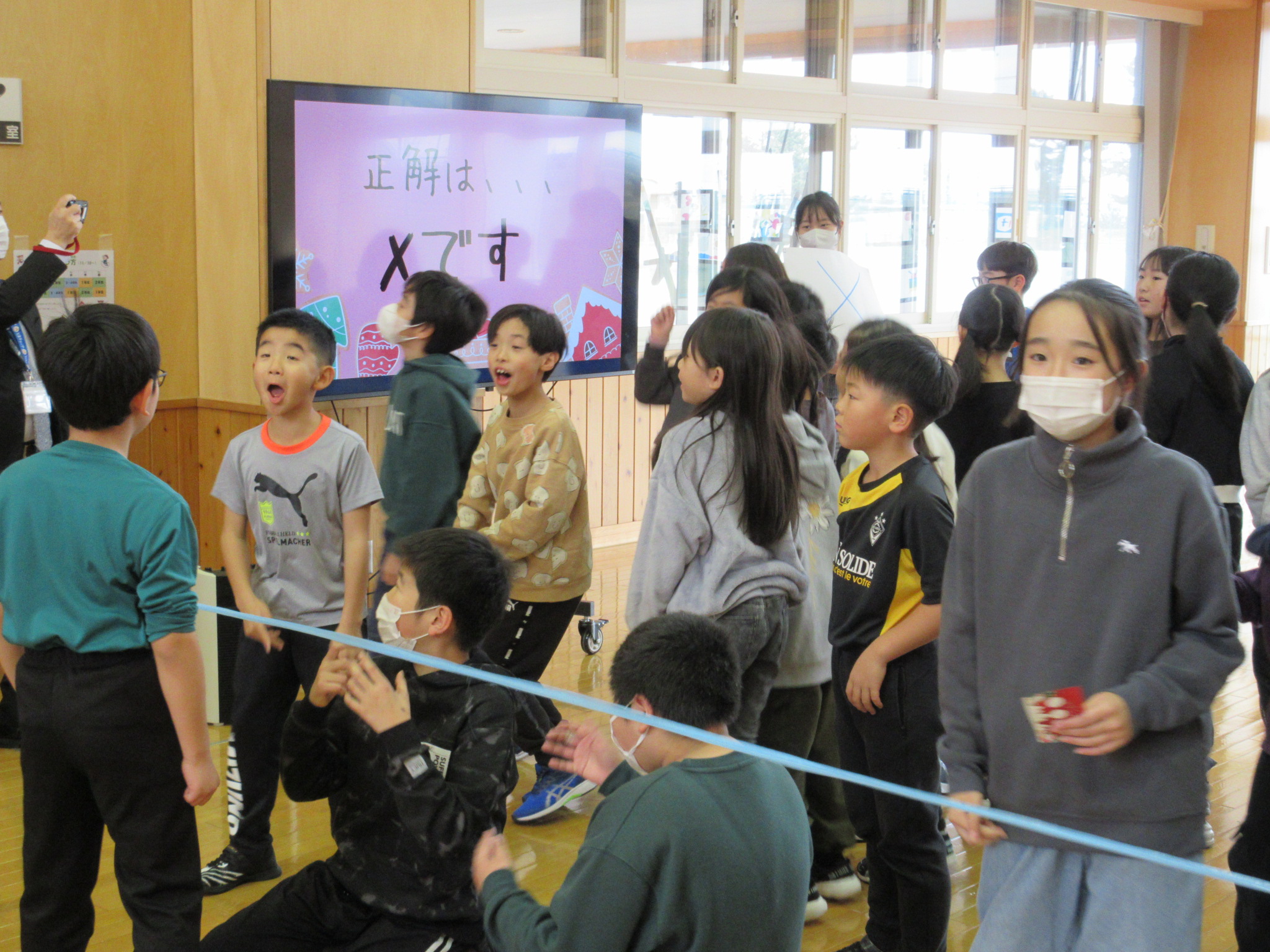 今回は、2年生、4年生、5年生がが対象でした。前回同様、○×クイズとスタンプラリーを行いました。