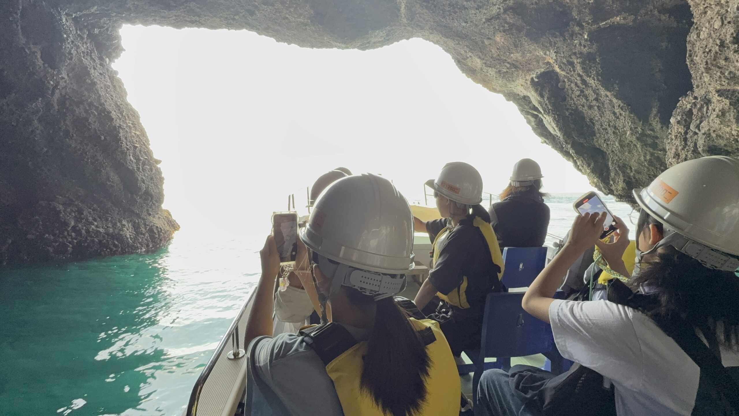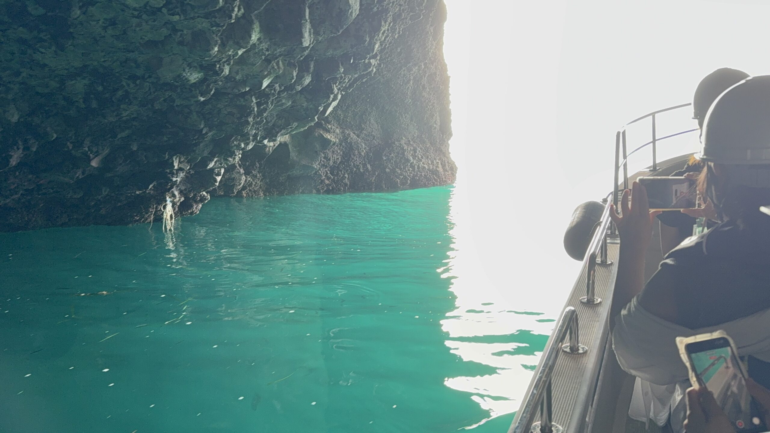 メインの「青の洞窟」。神秘的な空間に息が飲まれます。このクルーズで出会った男女が結ばれ、知内で農業を営んでいるとのこと。