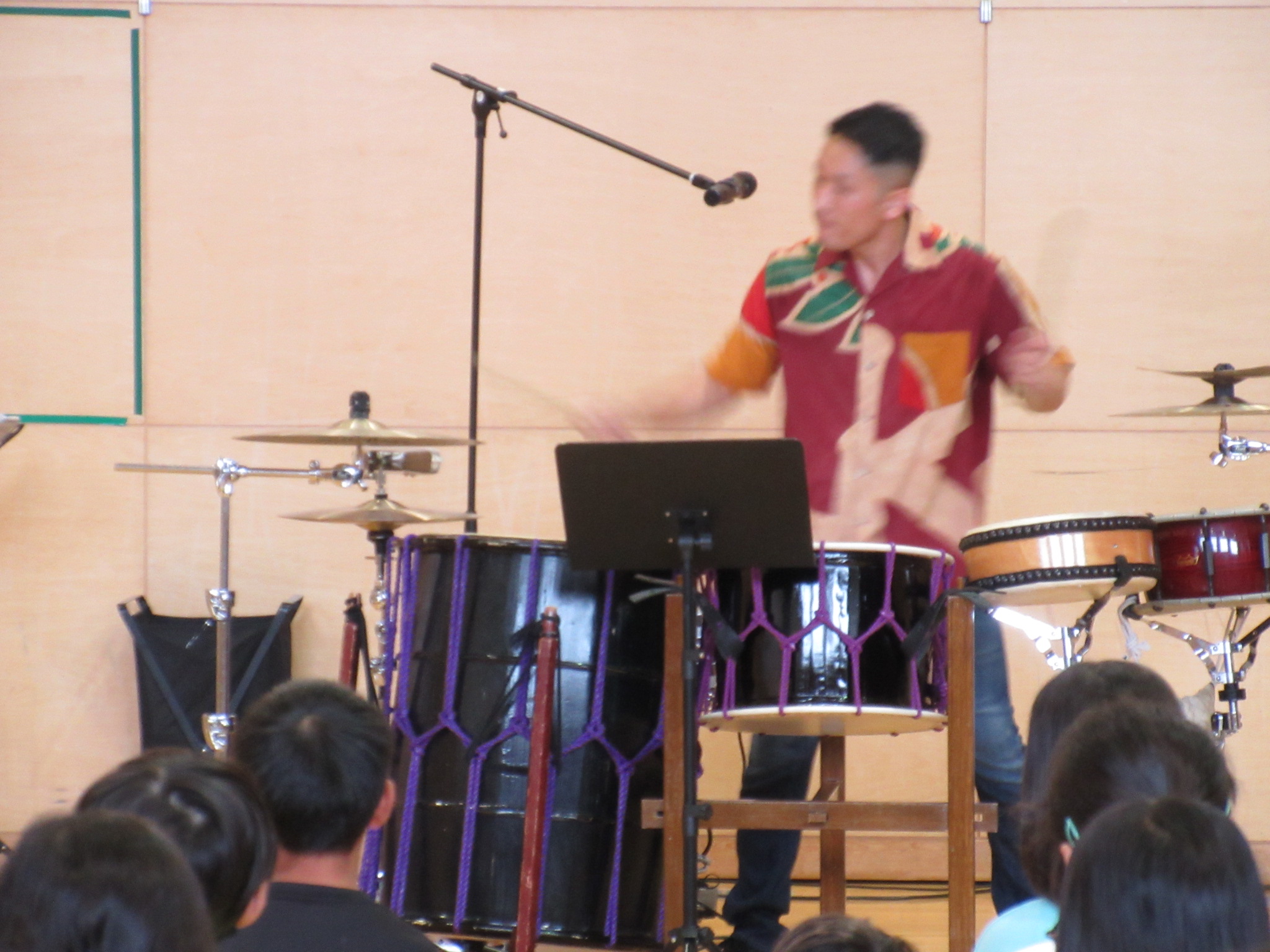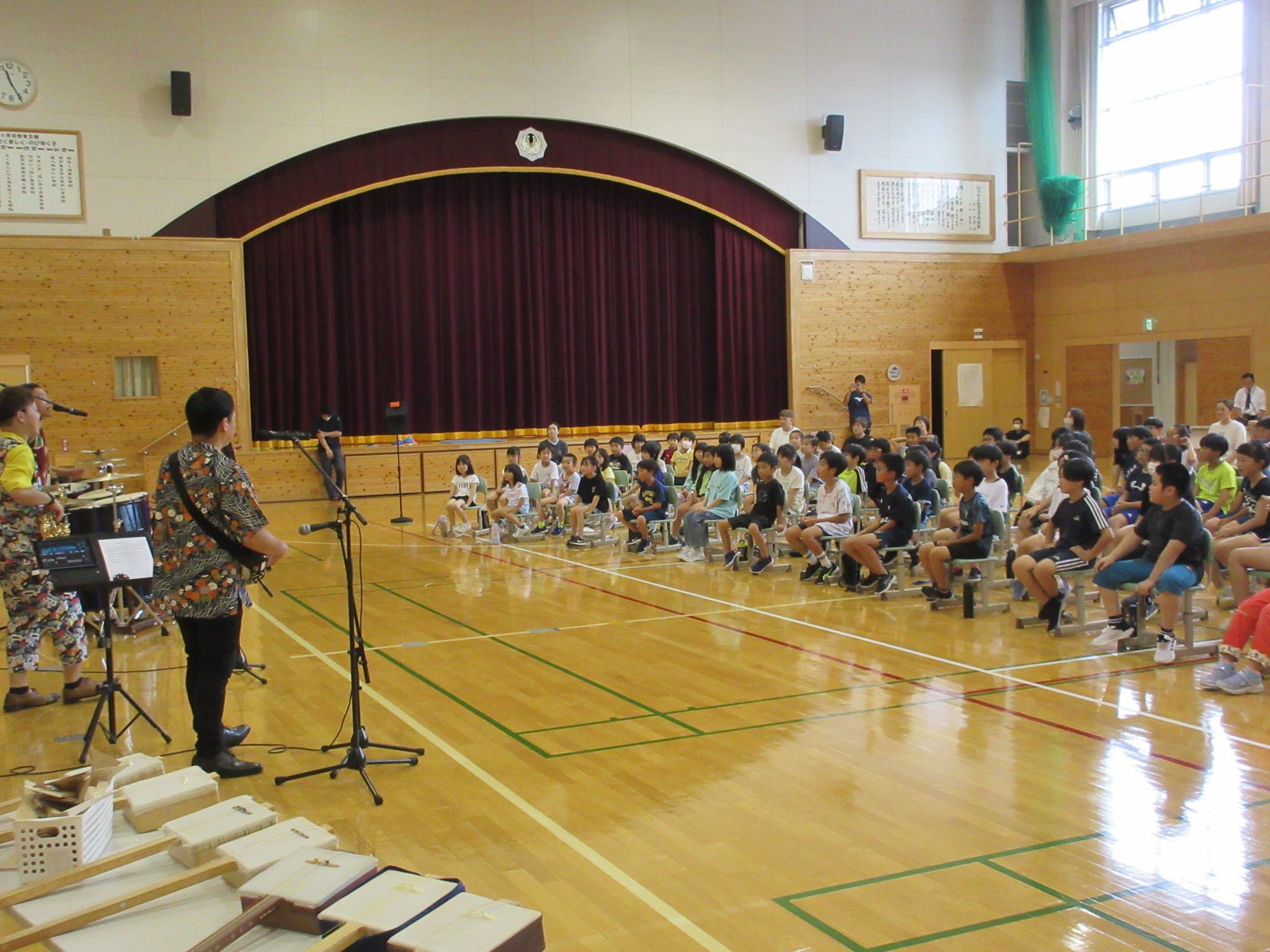 今日の3・4時間目に、社会教育主催の芸術鑑賞会が体育館で開催しました。今年は、Ezo’n Musicの皆様にによる「和楽器演奏会」でした。