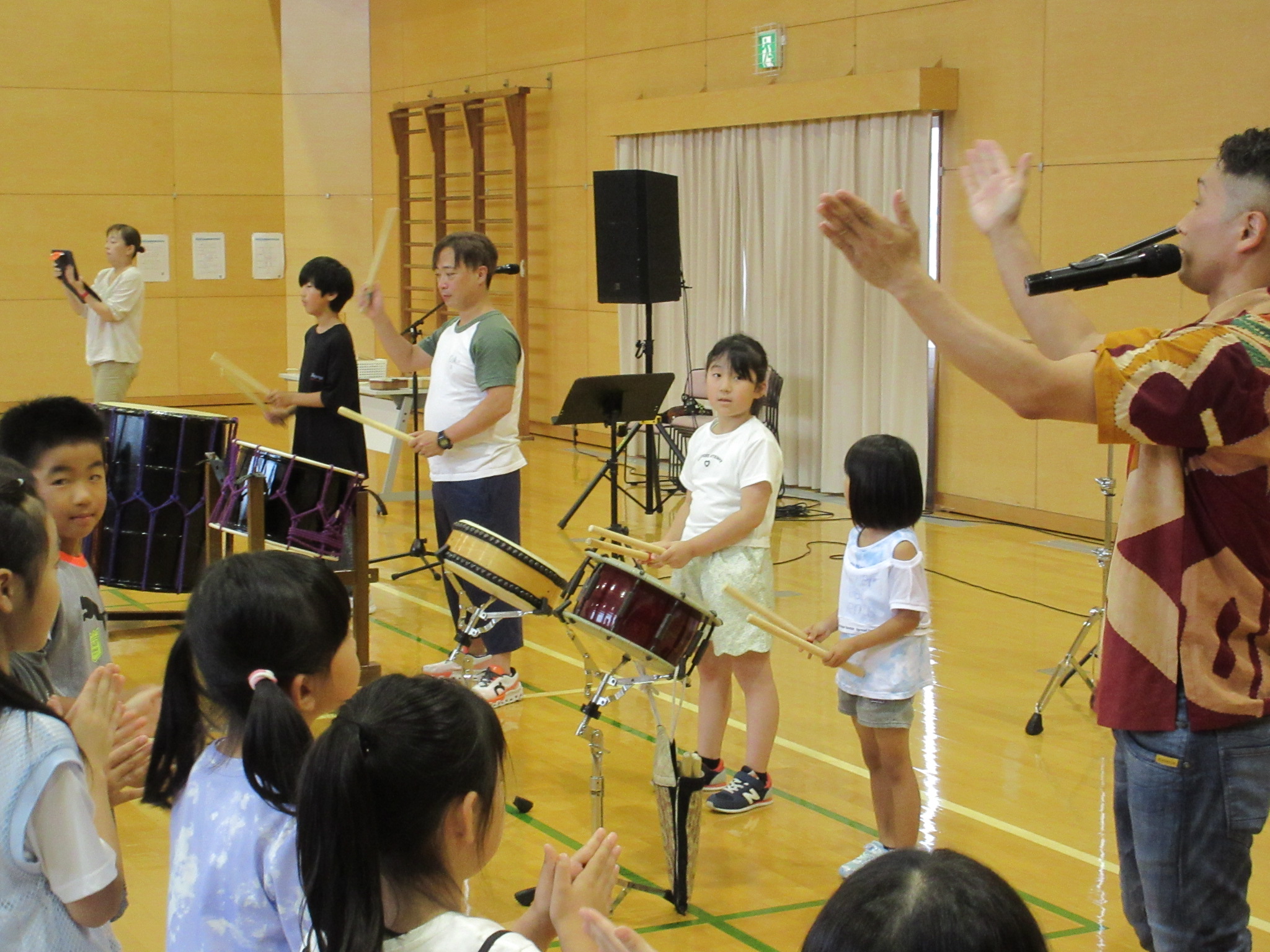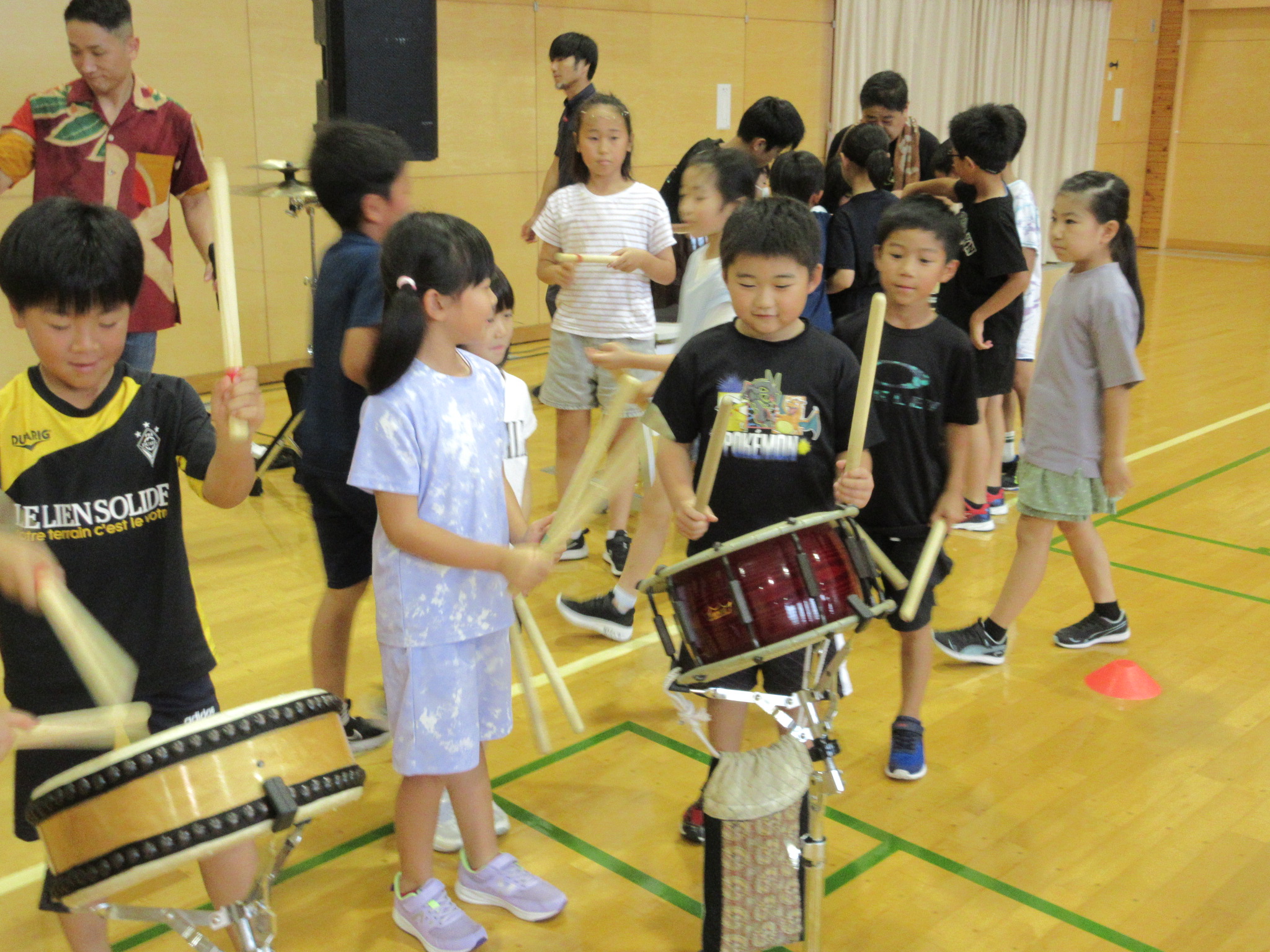 1・3・5年生の代表と飯川先生は、和太鼓の体験をしました。