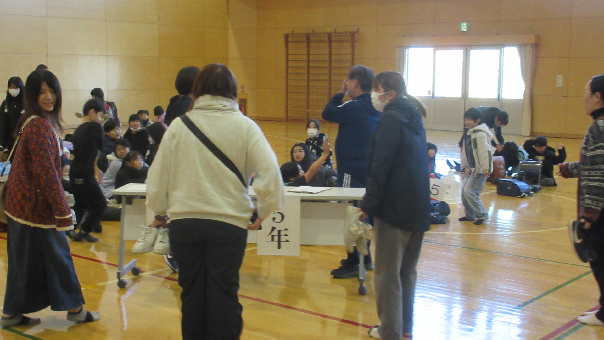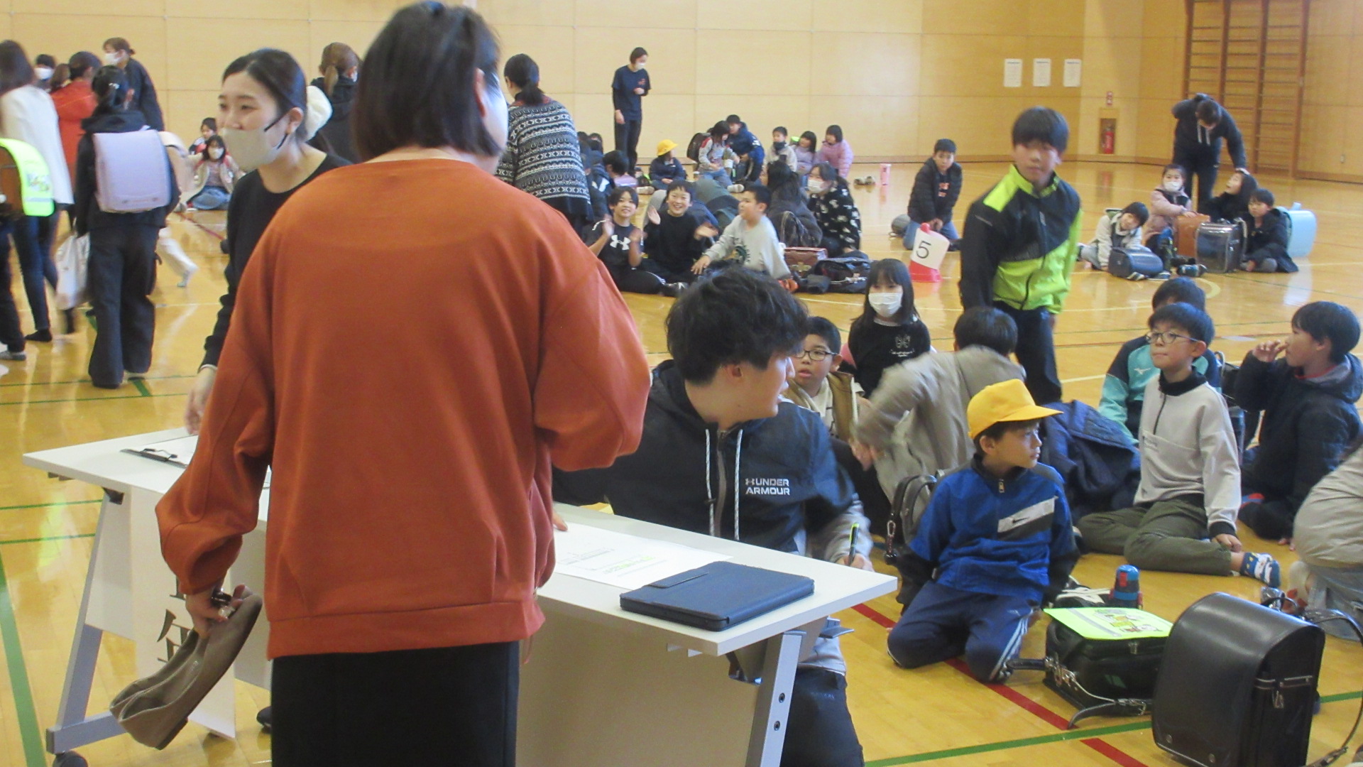 各学級で、1日防災の反省をして、最後は引き渡し訓練を実施しました。体育館に全校児童が集まり、実際に保護者の方が迎えに来て引き渡しをしました。大きな混乱もなく訓練は終了しました。