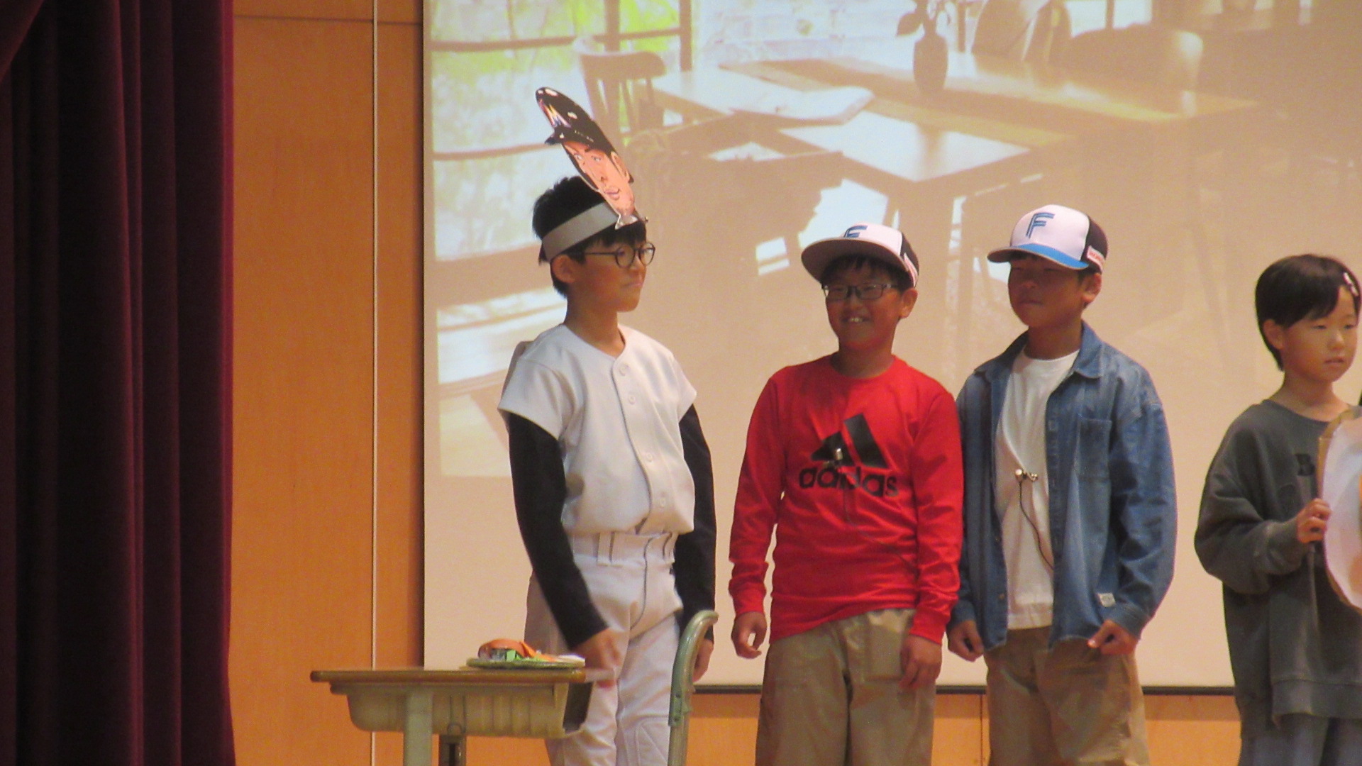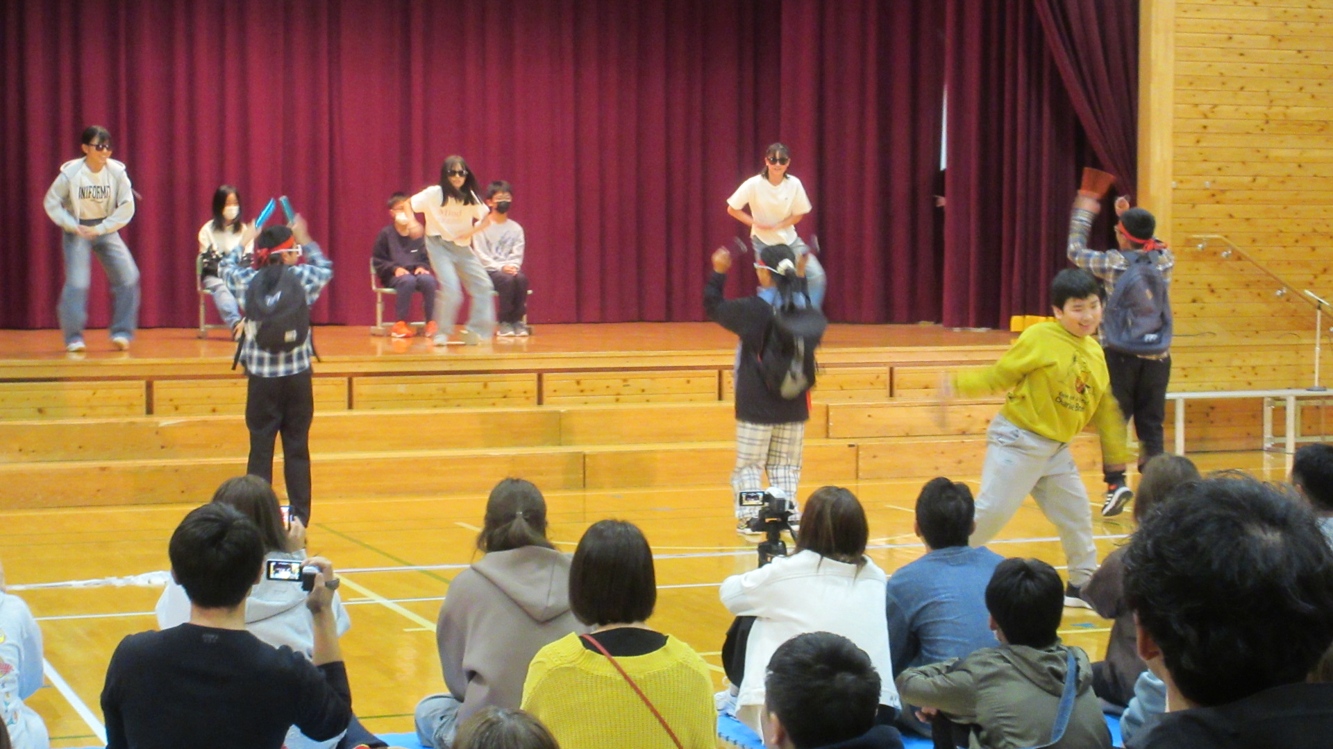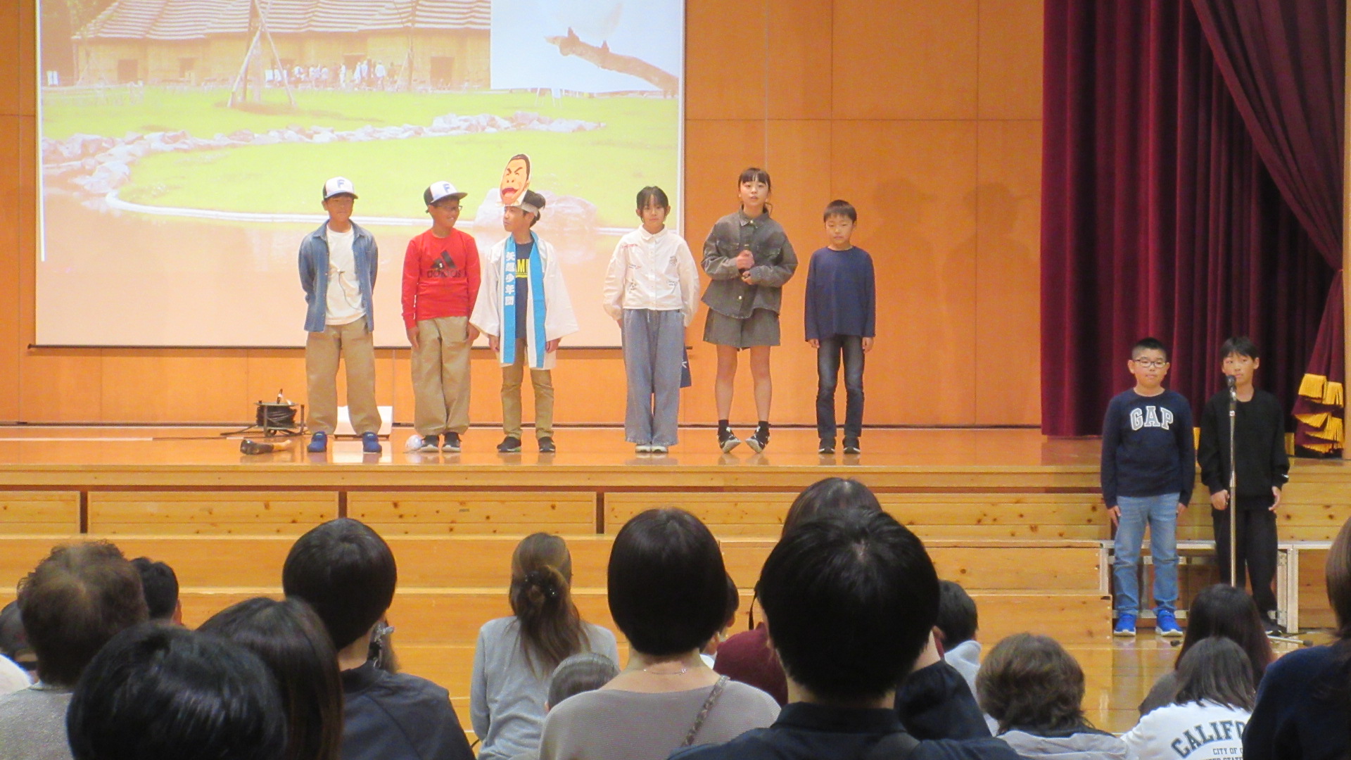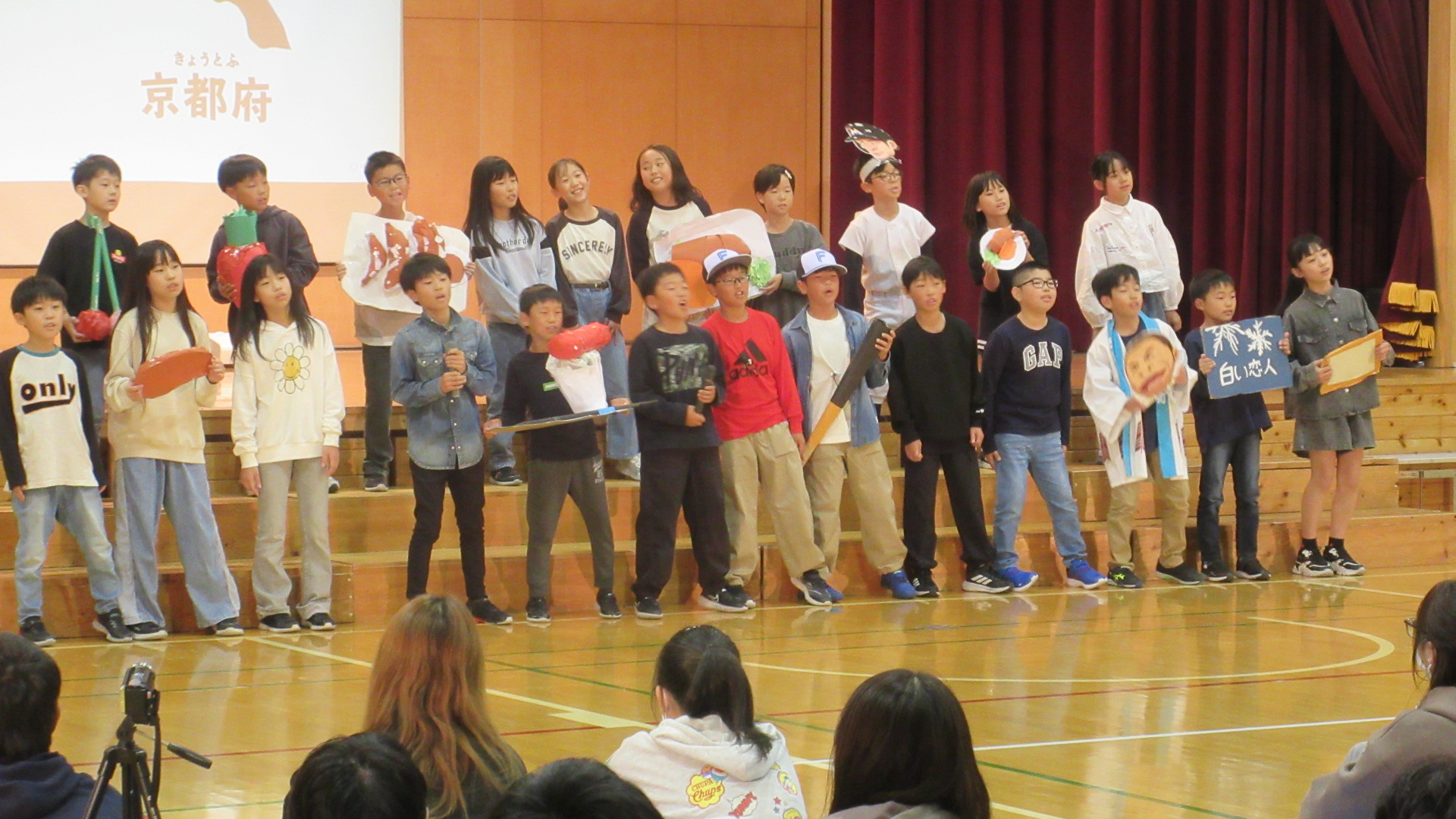 第2部は4~6年生です。4年生は、社会で学んだ都道府県について、自分たちで小道具を用意して力を合わせてがんばりました。
