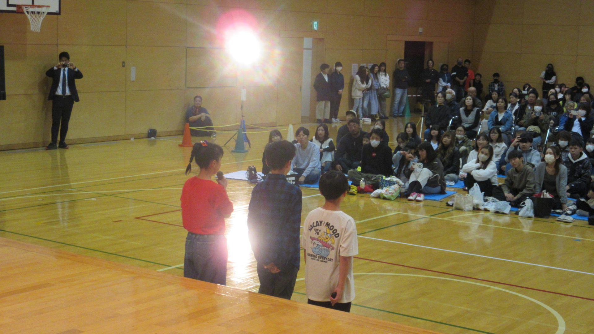 小学校生活にタイムスリップして、入学式や修学旅行などの思い出を発表していきました。特に、タイムスリップではダンスパフォーマンスで会場を沸かせました。