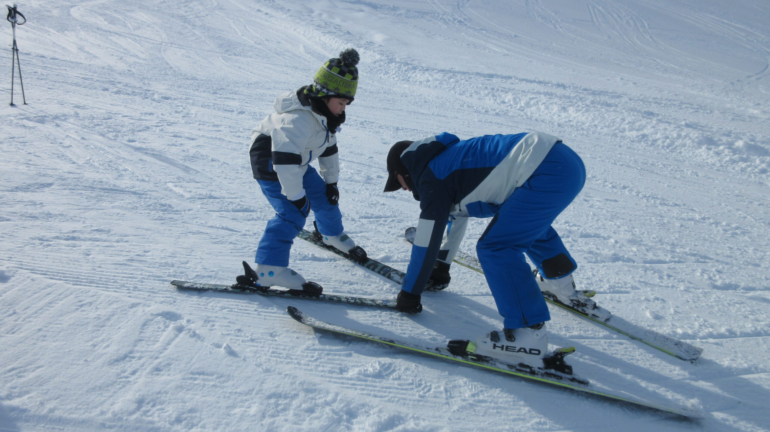 1年生も、ゲレンデの下の方で基本的な滑り方について学びました。上手な子は、後半上のグループに上がり、ゲレンデを滑っていました。