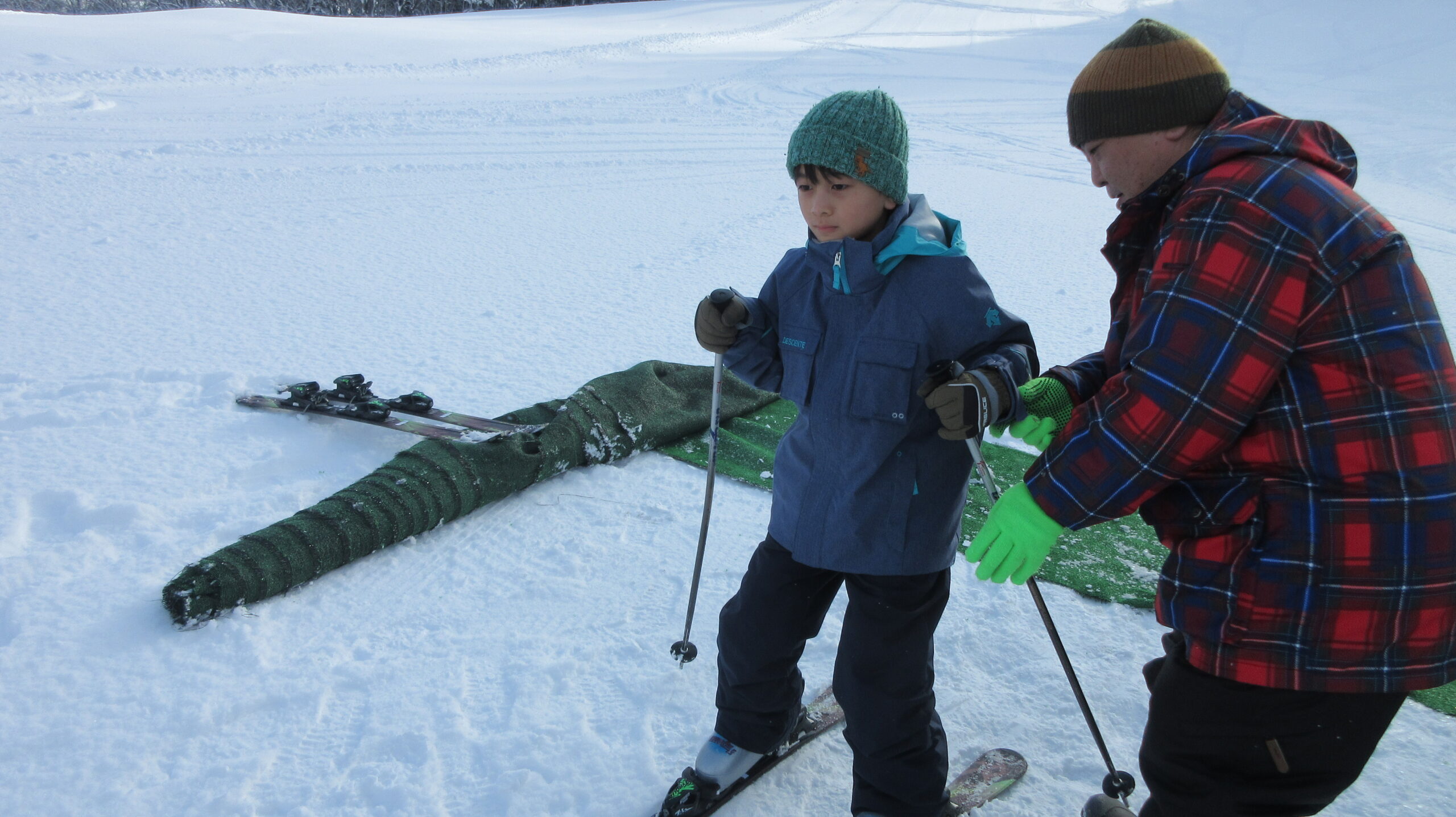 いくつかのグループに分けて、学習が進みました。2年生は、山の上からどんどん滑っていました。