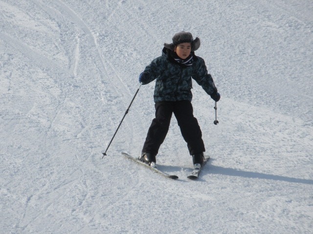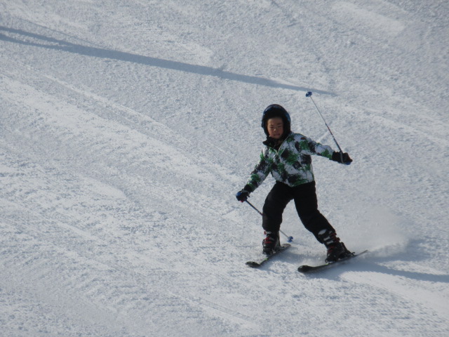 補助する手も少しずつはなして、自分の力で滑ることもできるようになってきました。