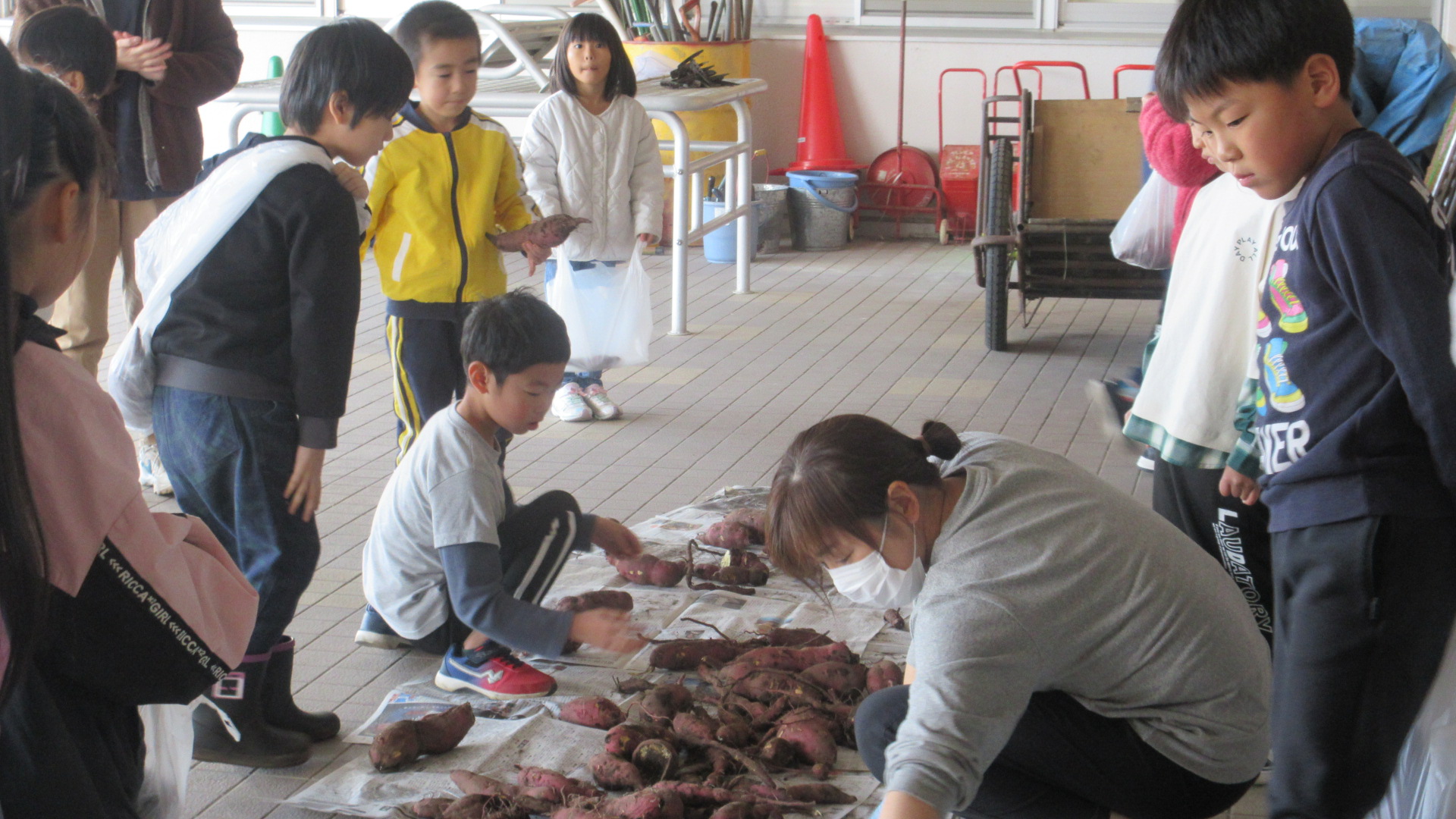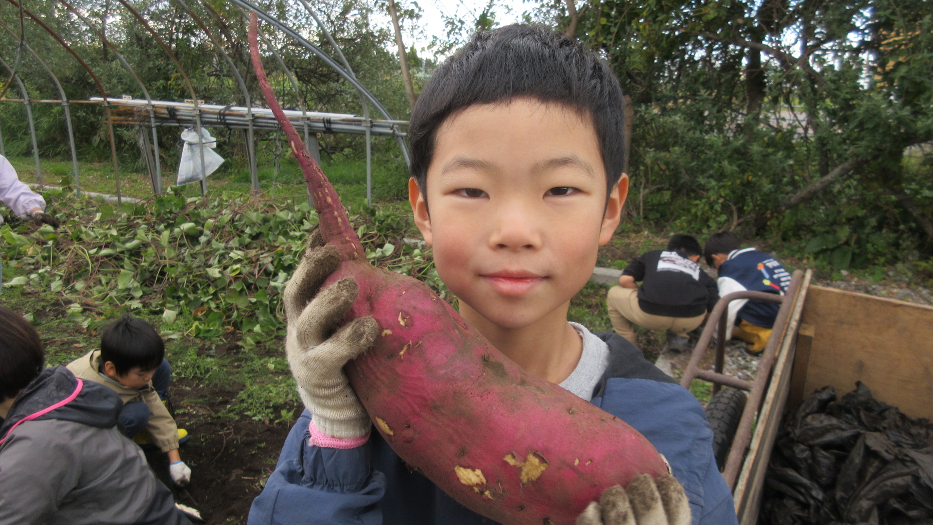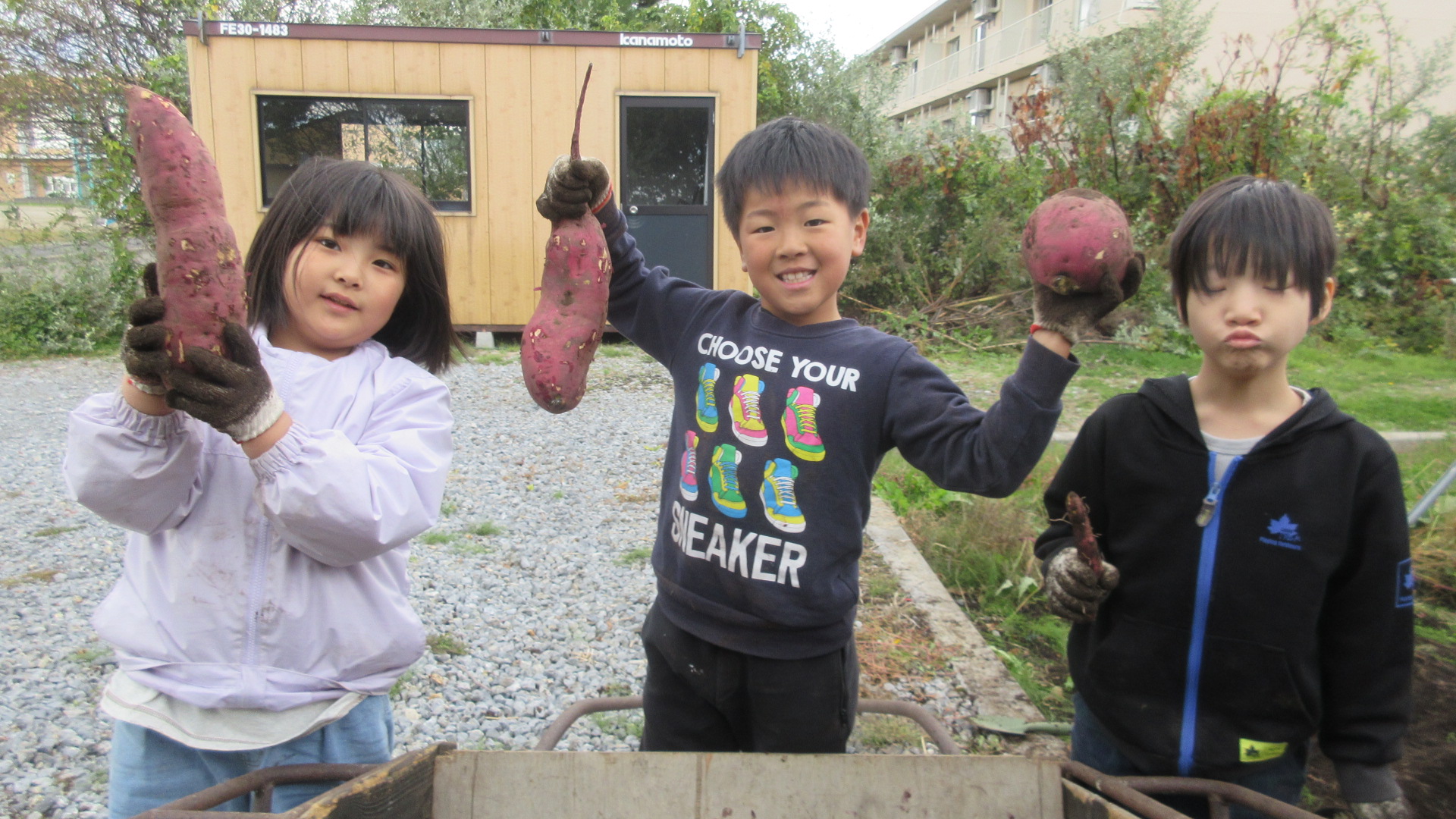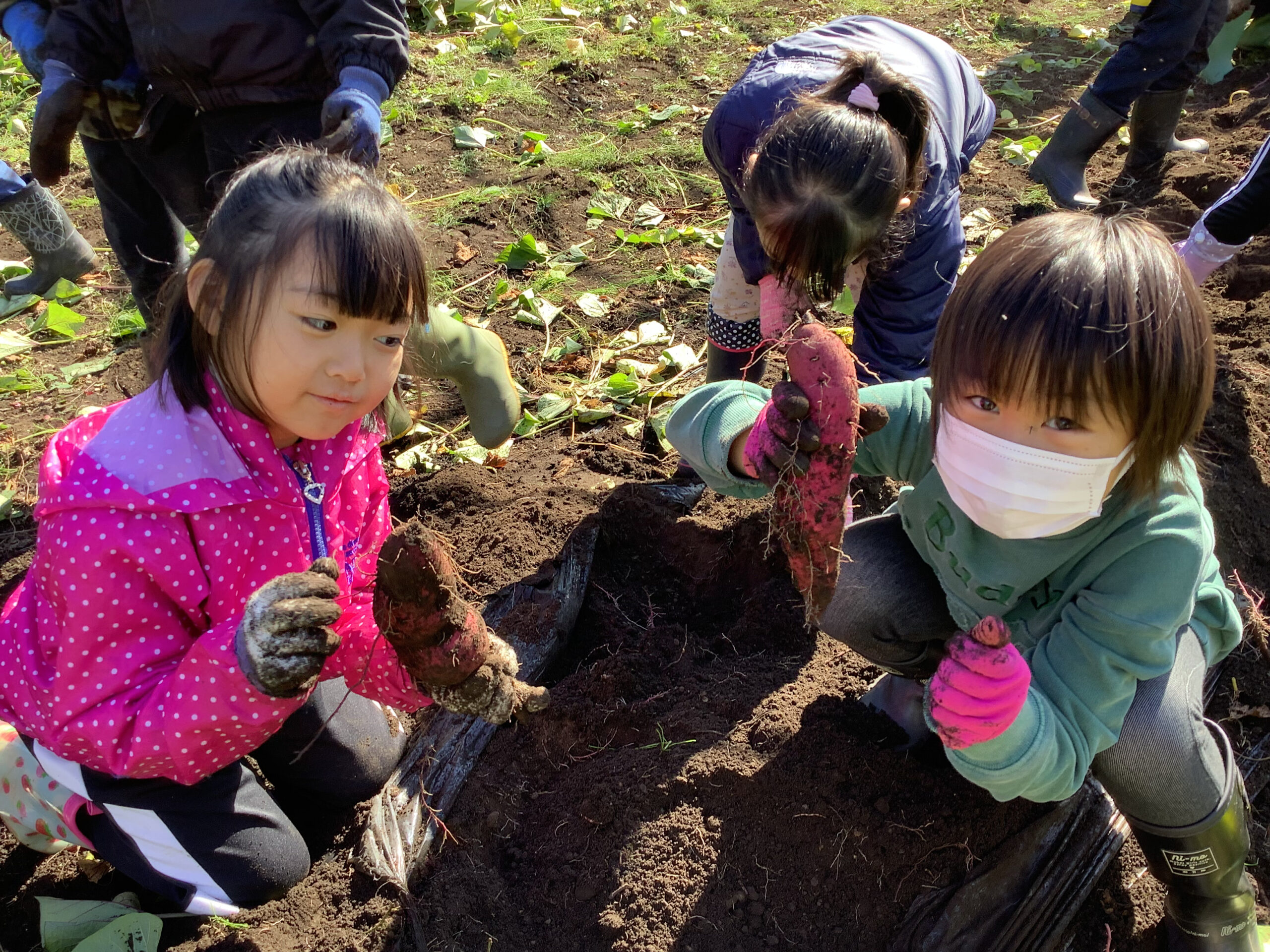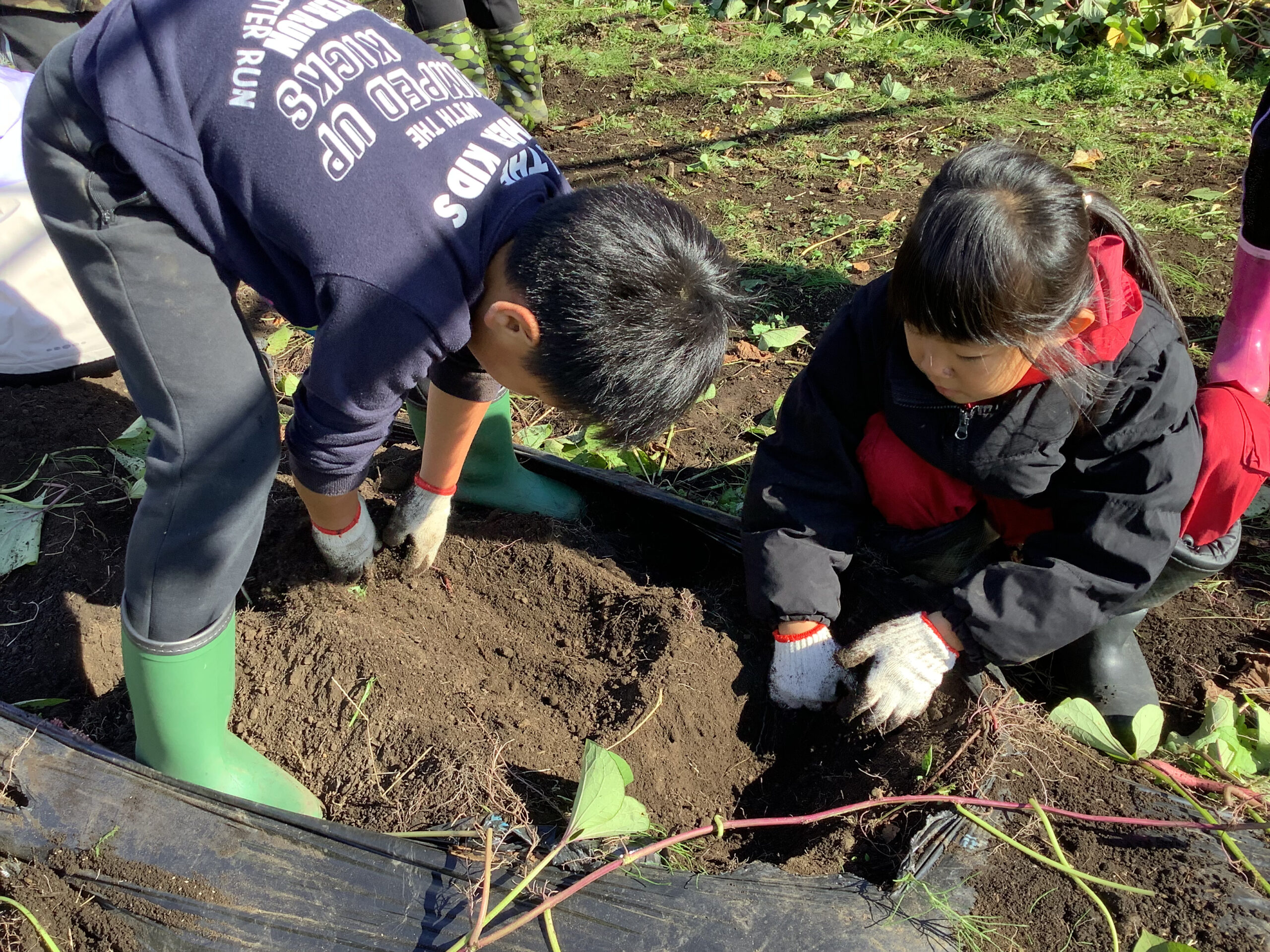 子どもたちは、サツマイモを求めて、まるで宝探しのように土を掘っていました。