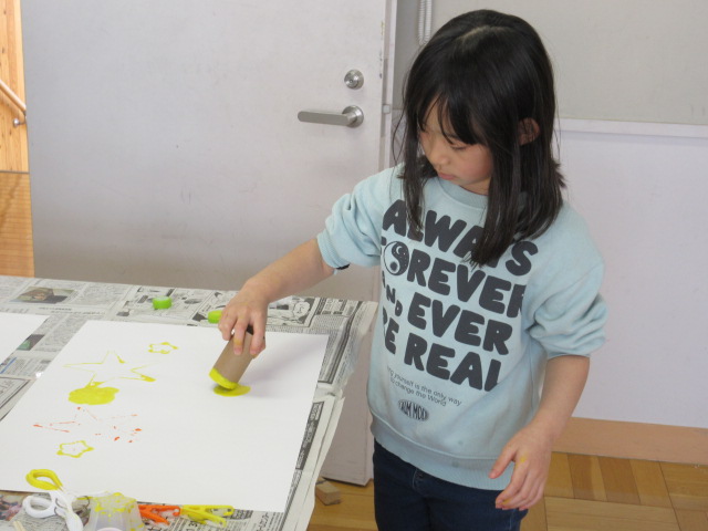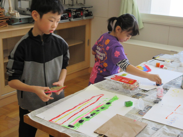 ちょっと服も汚した子もいますが、みんな自分の考えた作品を形にしていきました。