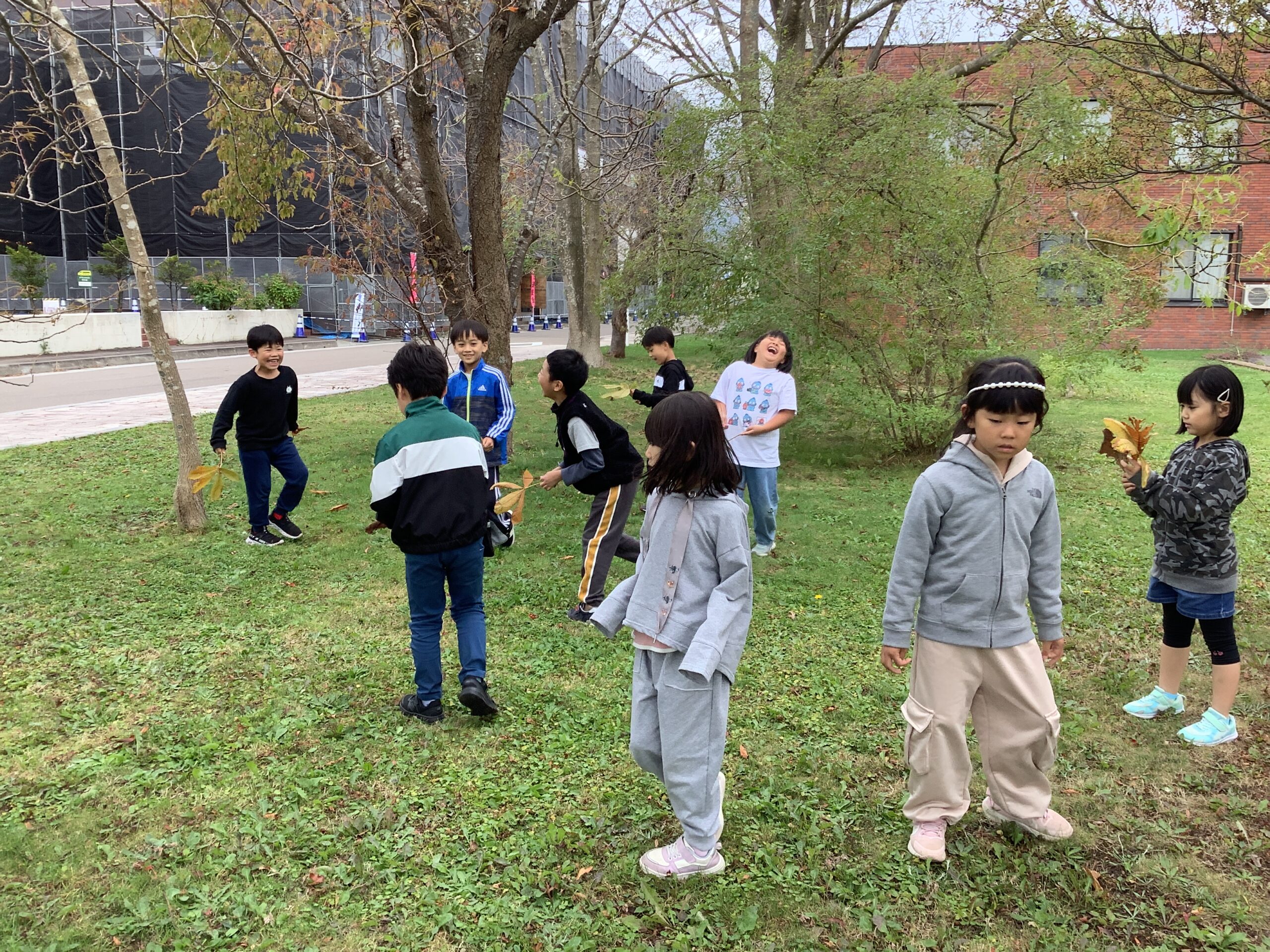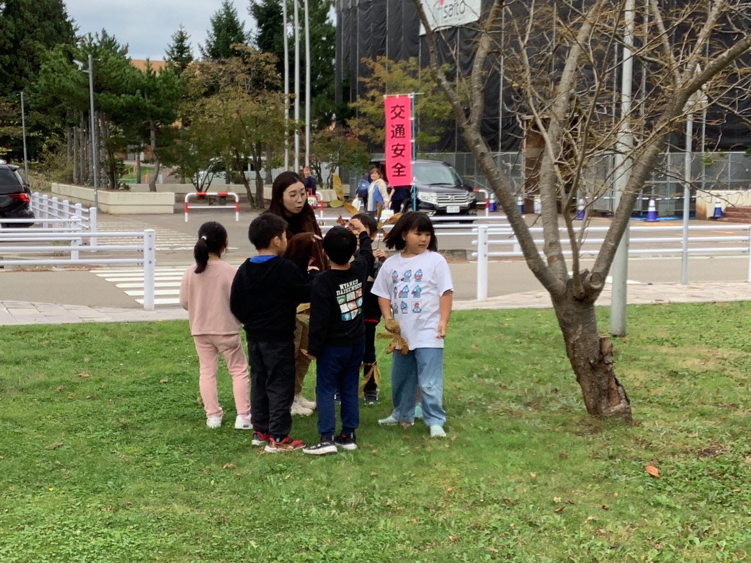 ほらほら、あっちみてごらん、色はどうなっている? 先生の問いかけに「あそこが赤くなっている!」など観察をしながら歩きました。