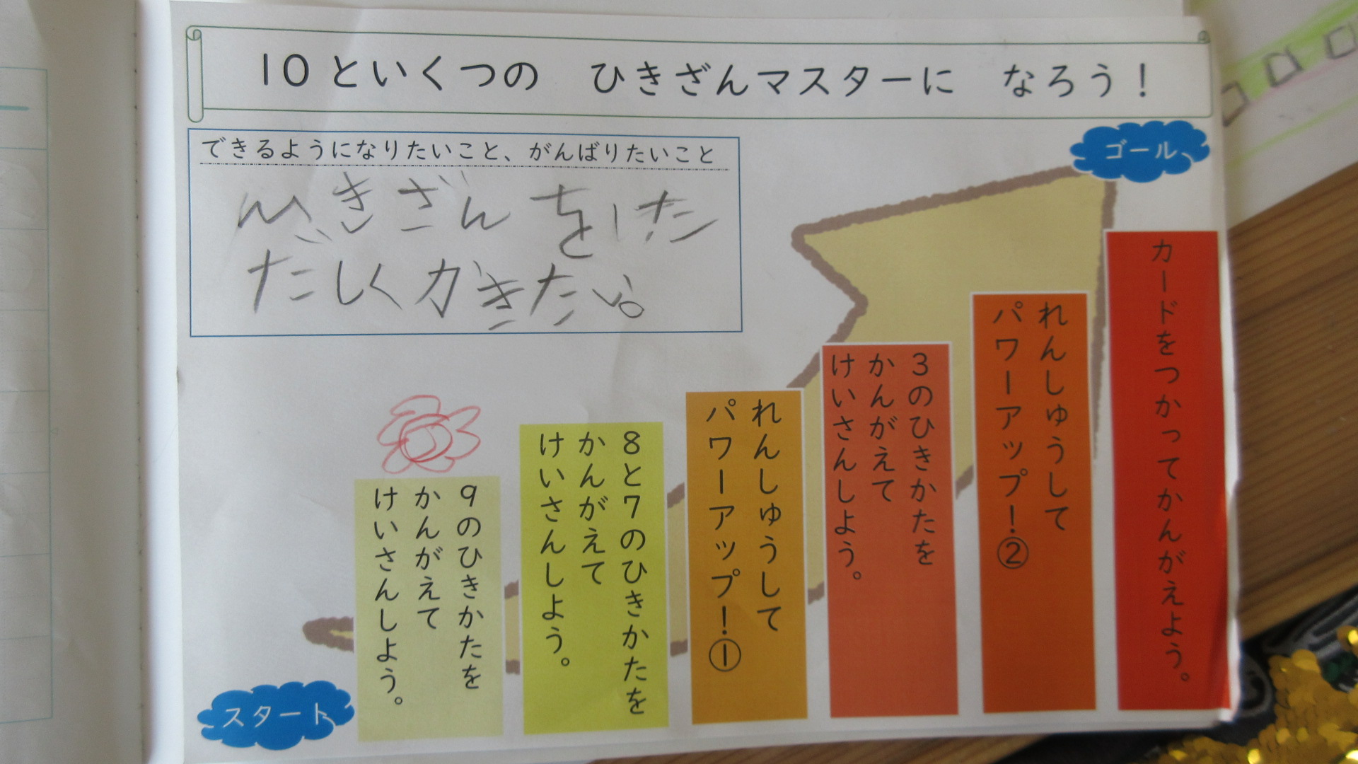 インプットばかりでなく、このアウトプットがとても大切です。アウトプットすることで歯垢が整理されていきます。1年生全員がひき算マスターを目指して頑張っています。