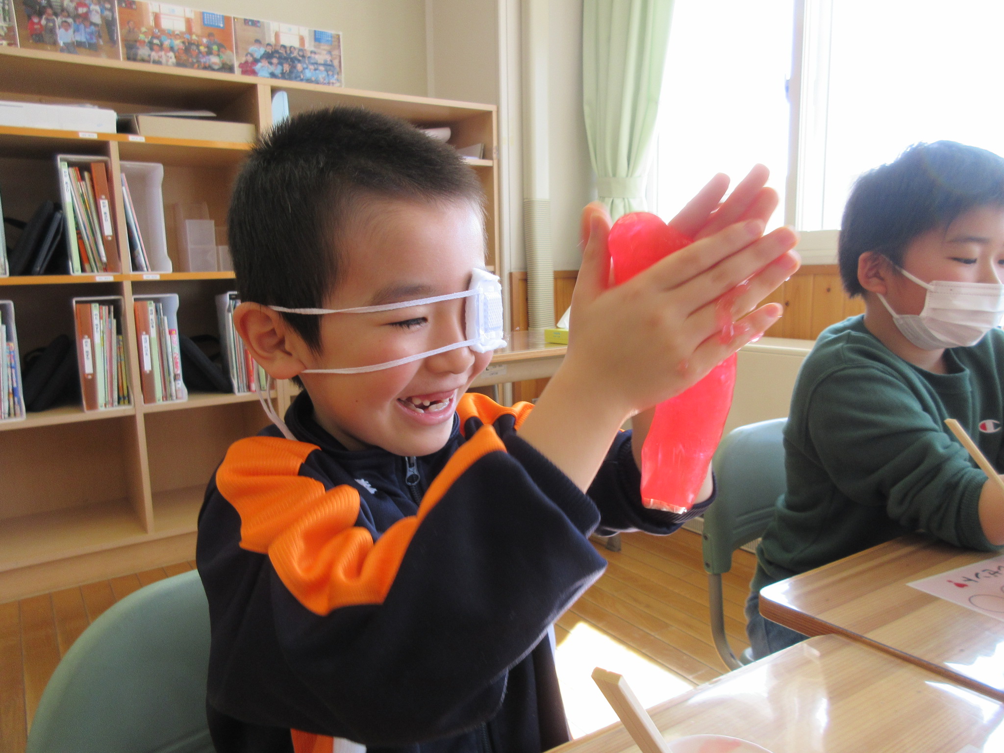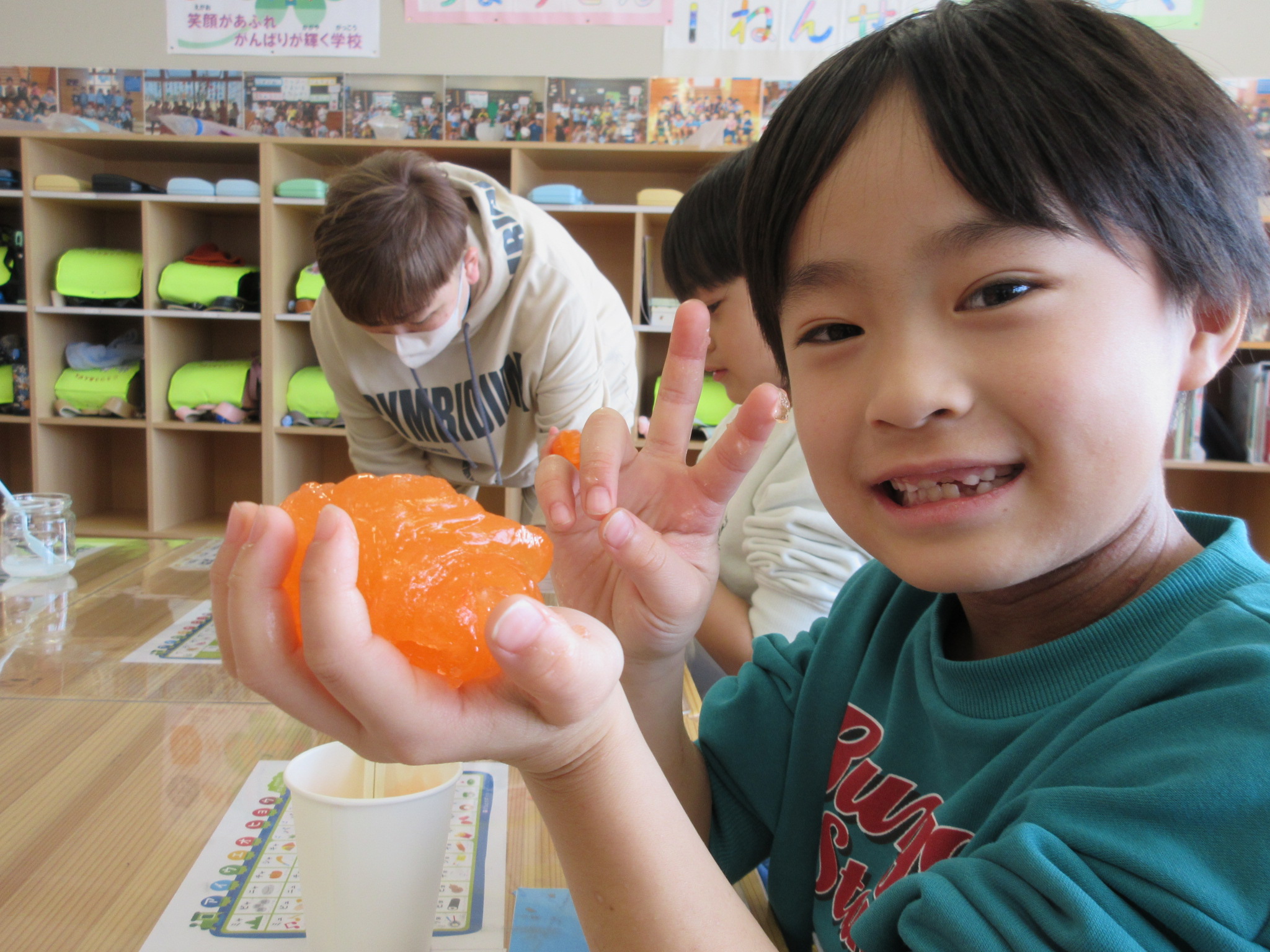 みんなの笑顔が輝いた時間でした。1年生の友だちからも「さきちゃん、すごいね。」「スライム作れたのもさきちゃんのおかげだね。」とさきちゃんをほめる言葉がたくさん聞かれました。