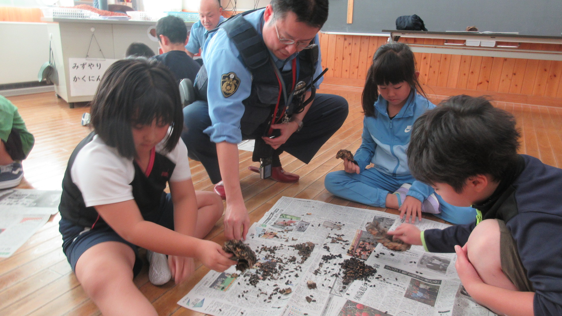 当日は、木古内警察署と知内派出所のおまわりさんも来て一緒に種とりをしました。
