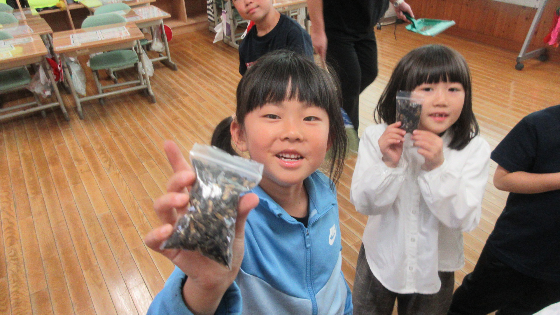 袋いっぱいに詰めて、「うちのハムスターにあげようかな?」「来年植えてみようかな?」と様々な声が聞こえてきました。