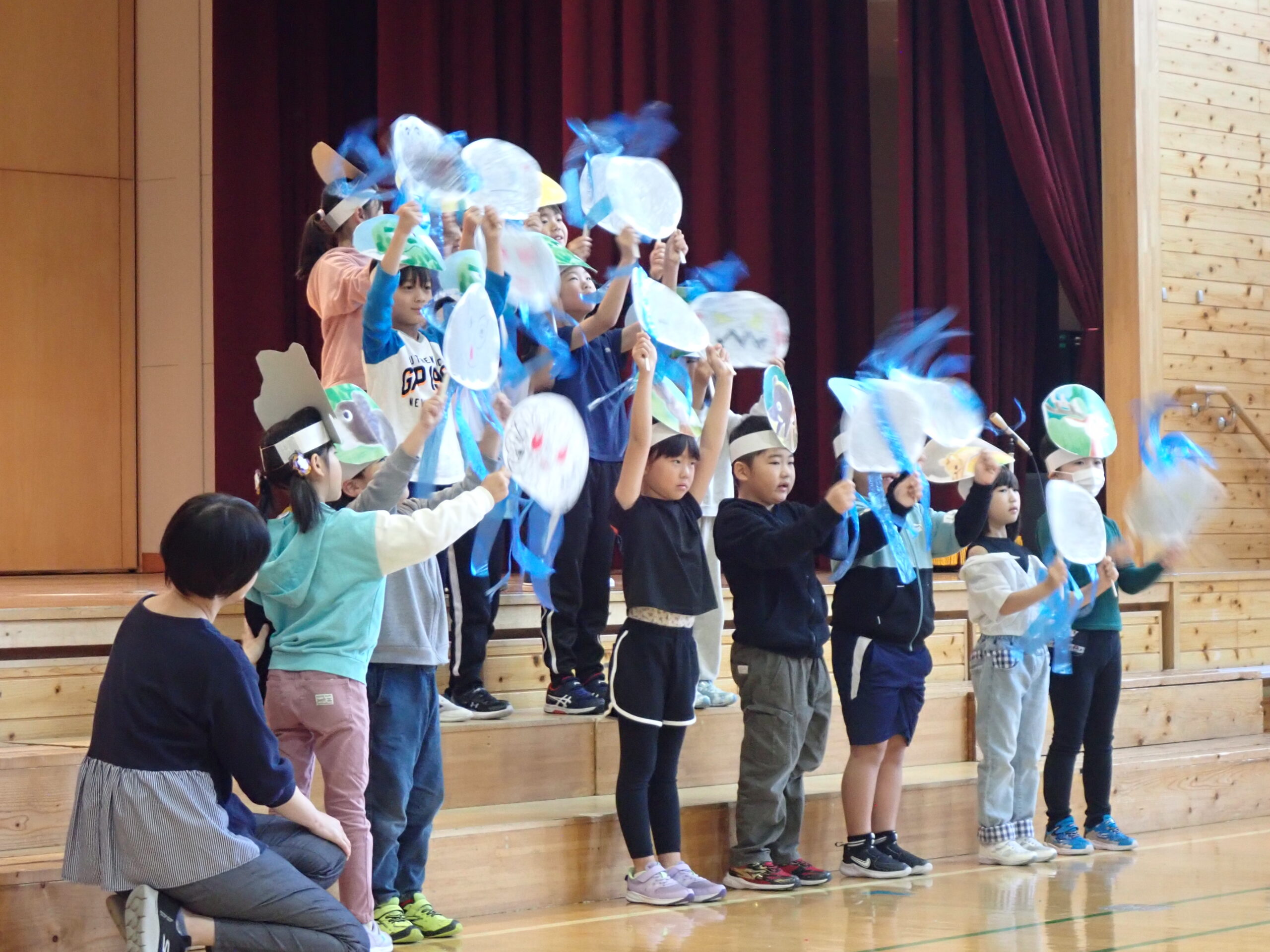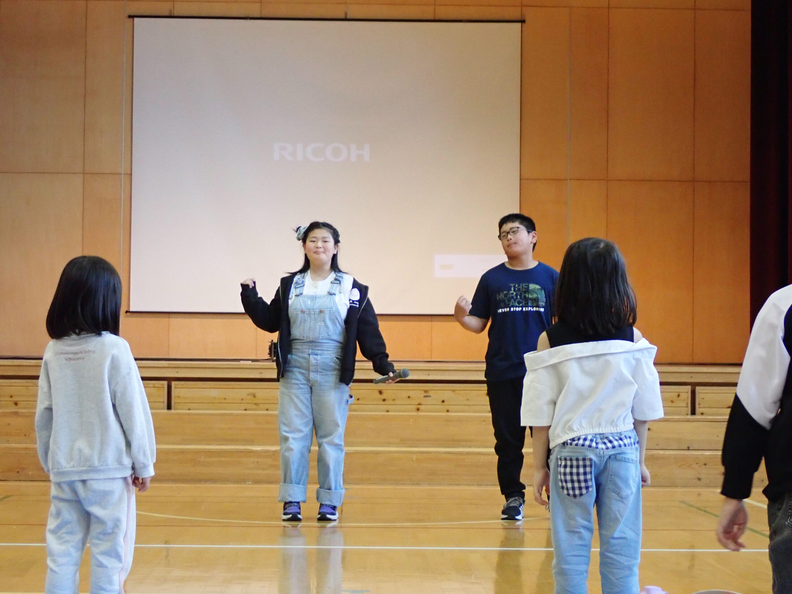 児童が互いに発表し合う総練習的な児童観覧日のスタートは、6年生の「全力!協力!ハッピースマイル!」の掛け声でスタートです。