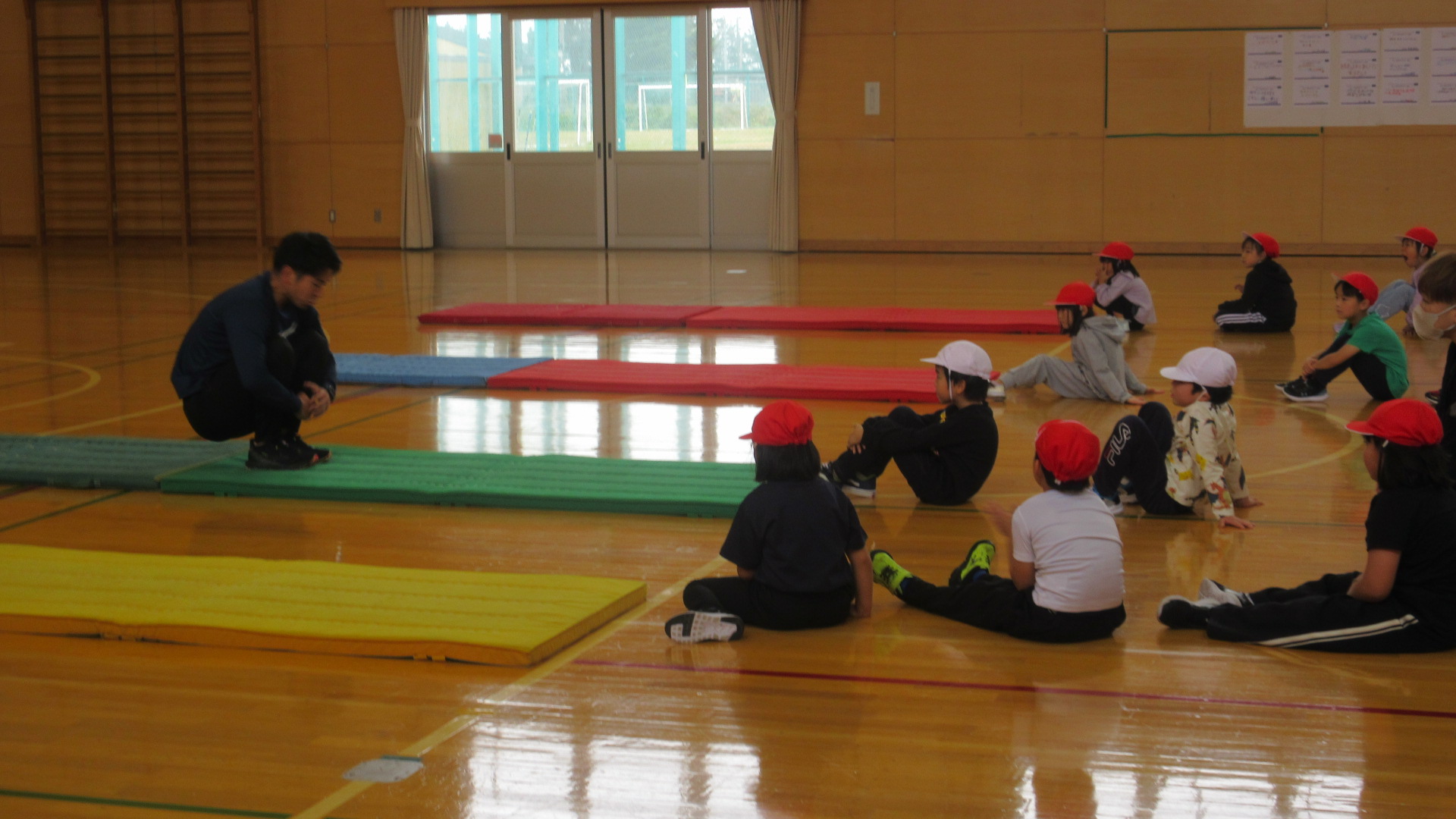 2時間目は、体育のマット運動でみんな前転をがんばっていました。池田先生の話も真剣に聞いて、上手に回るコツをつかんでいました。