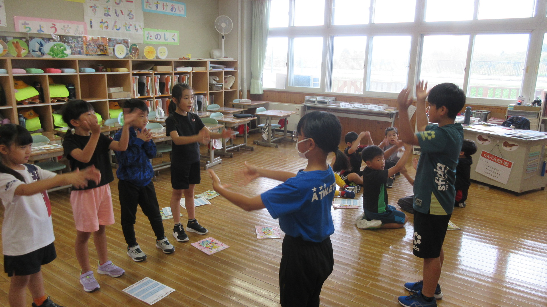 3年生の教え方が上手で、みんな笑顔でがんばっていました。