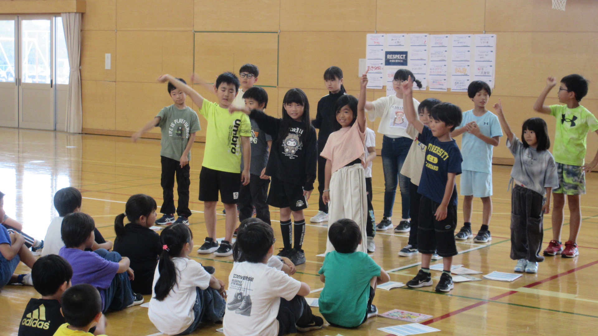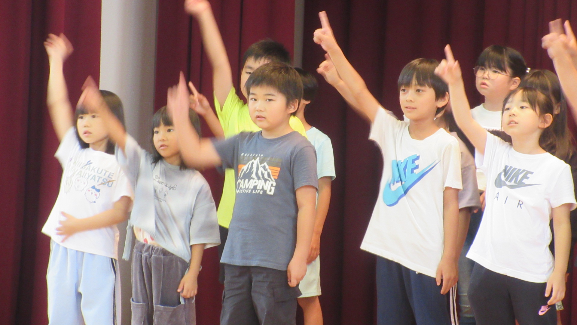 3年生が先生役になって、歌う姿勢や振り付けについて教えてあげていました。