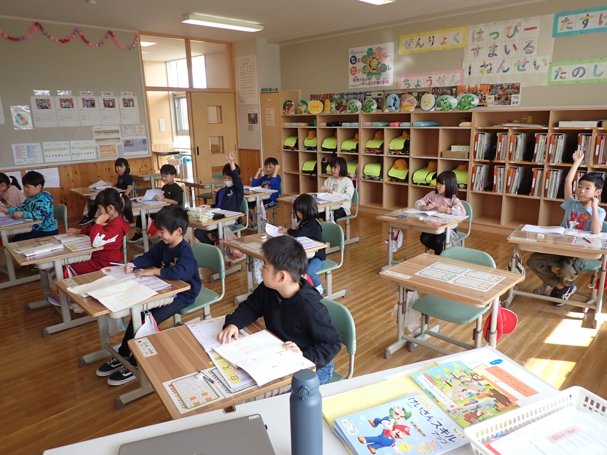 各学年練習の時間もありますが、落ち着いて学習にも取り組んでいます。1年生、集中できていますね。