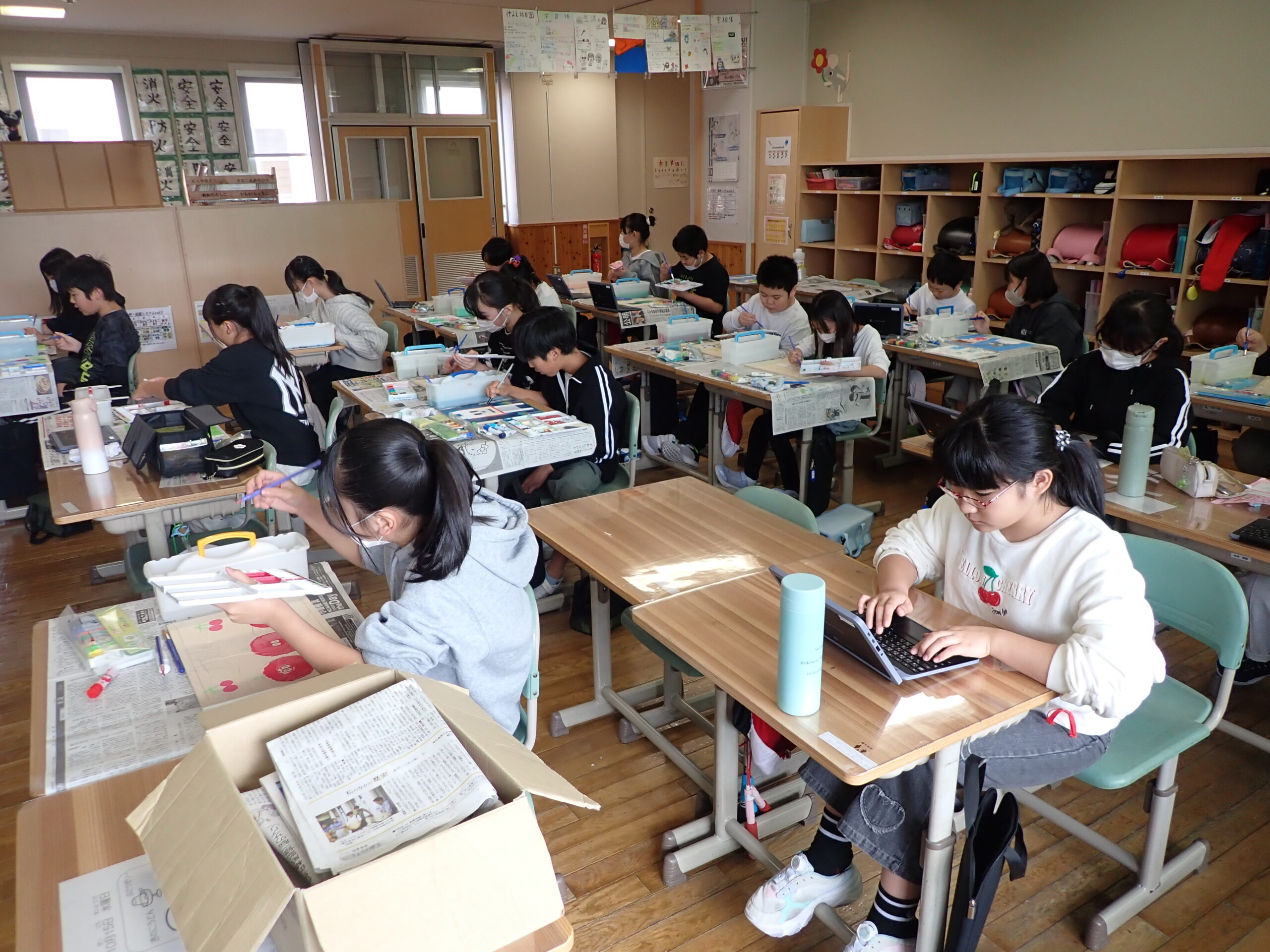 6年生は外国語活動で、世界の国々で扱われている「もの」に触れ、真剣に調べたりメモをしていました。いつも通りです。さすが6年生、けじめがついています。