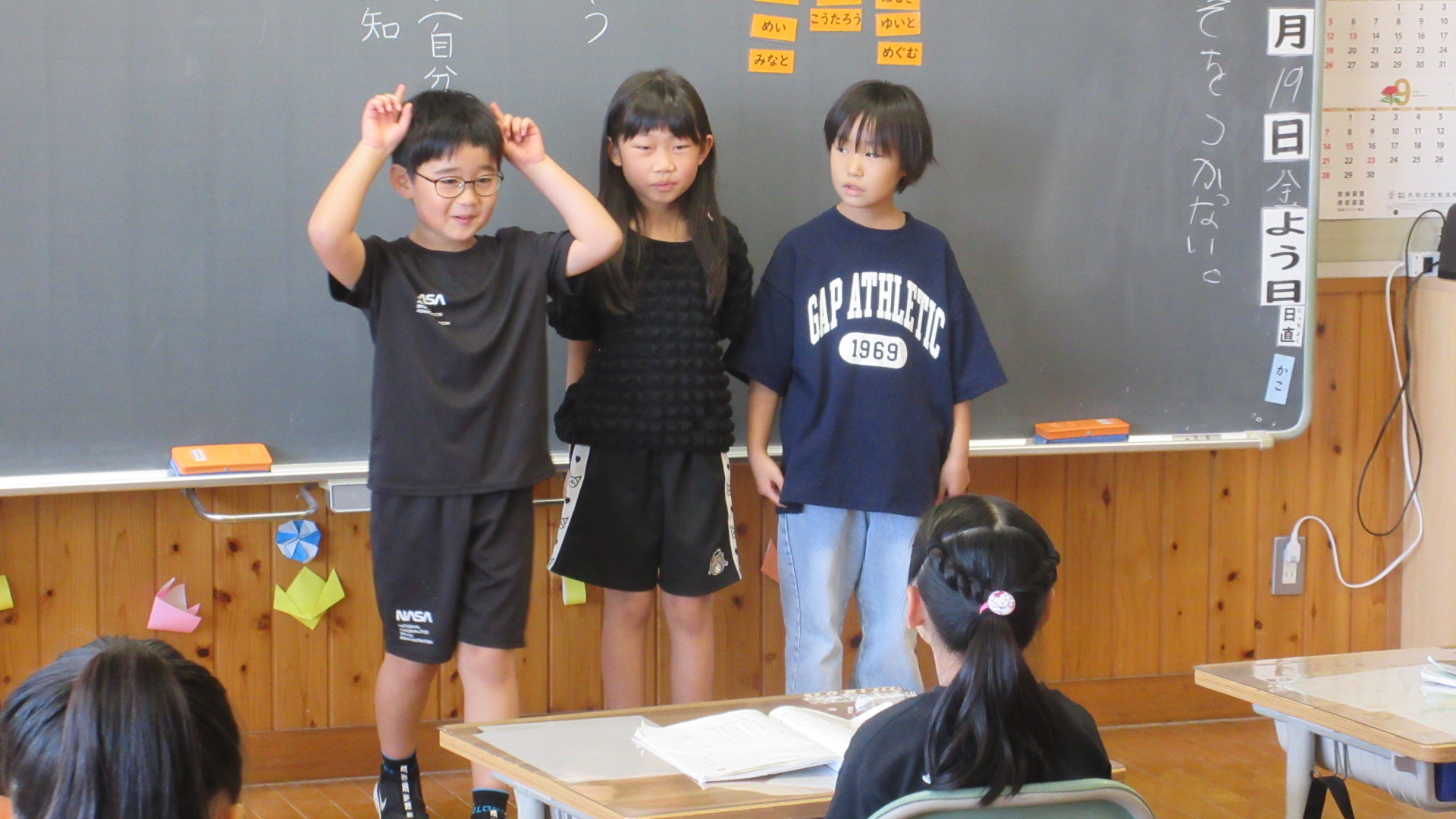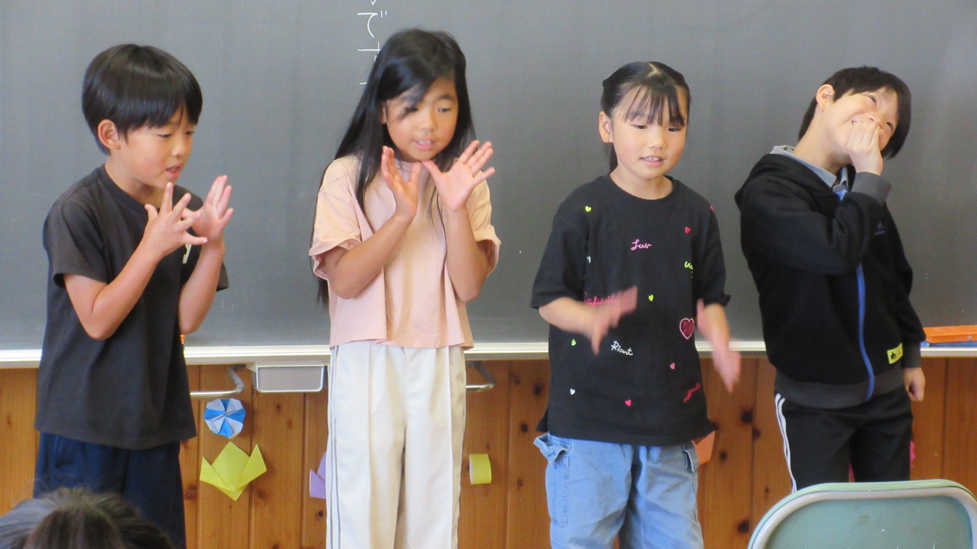 3つのグループに分かれて行いましたが、グループによって読み方や動作も違い、とても工夫して群読していました。