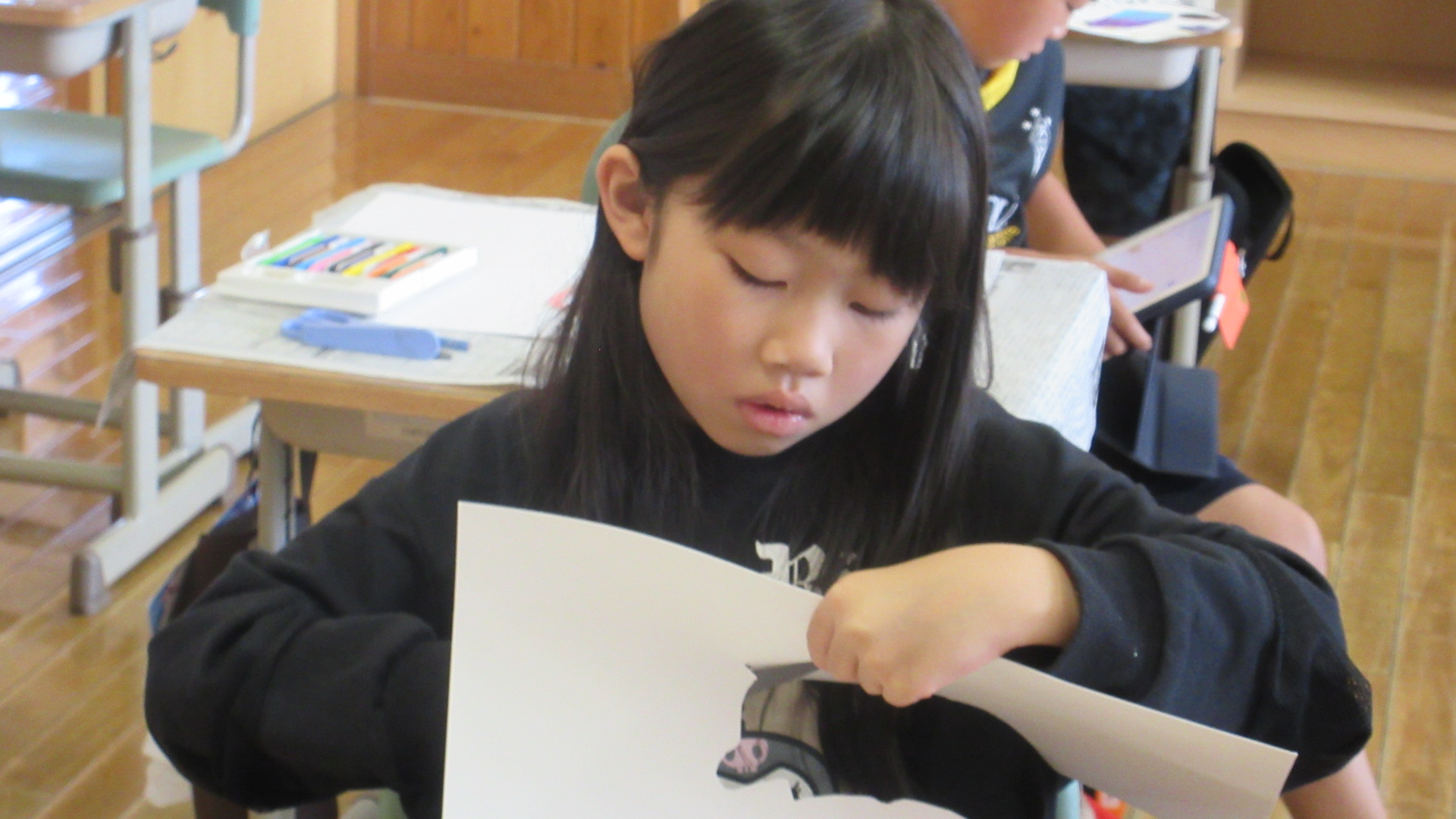画用紙を切ったり張ったりして表現する子など様々な方法で、自分の作品を作っていました。