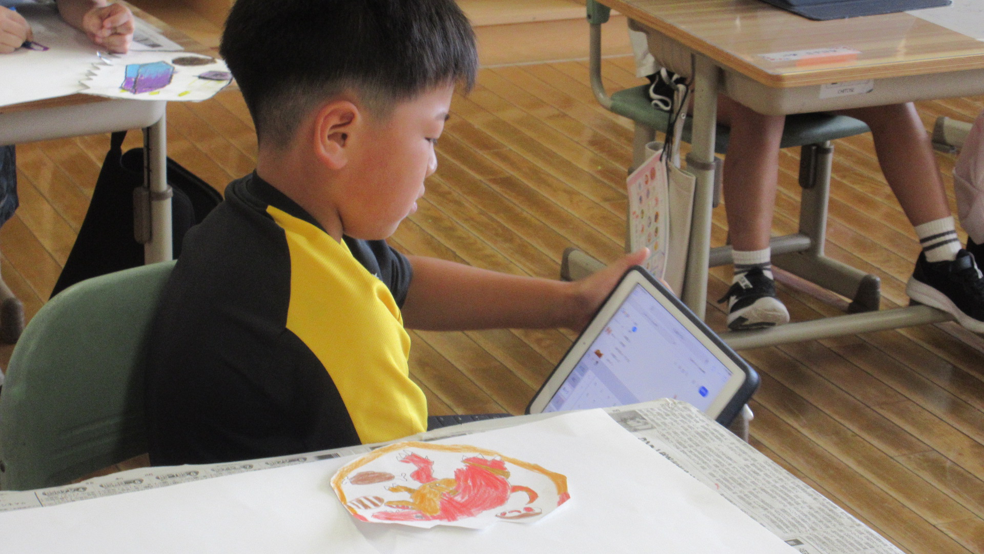 端末で自分の思ったものに近いものを見つけ出し描いていく子。