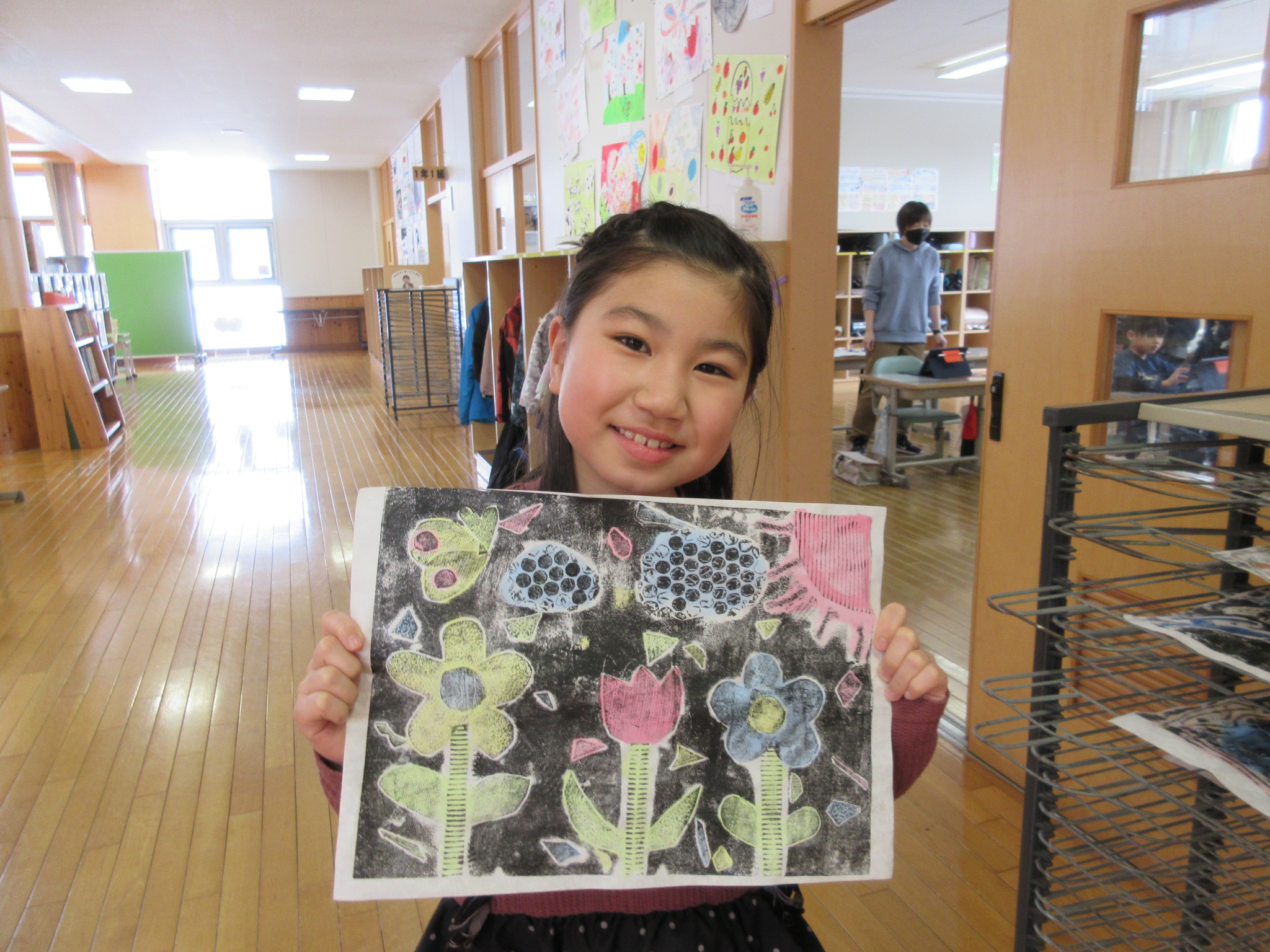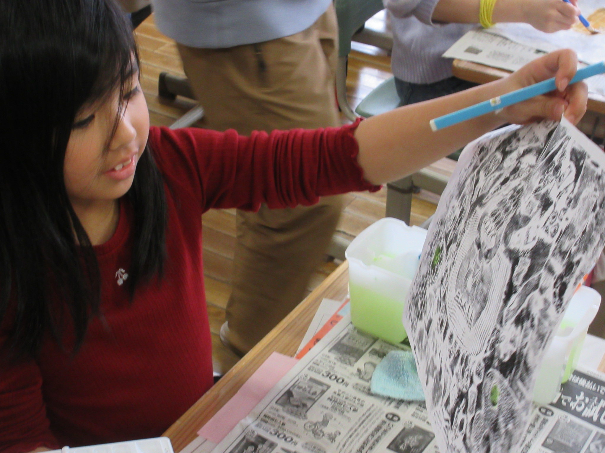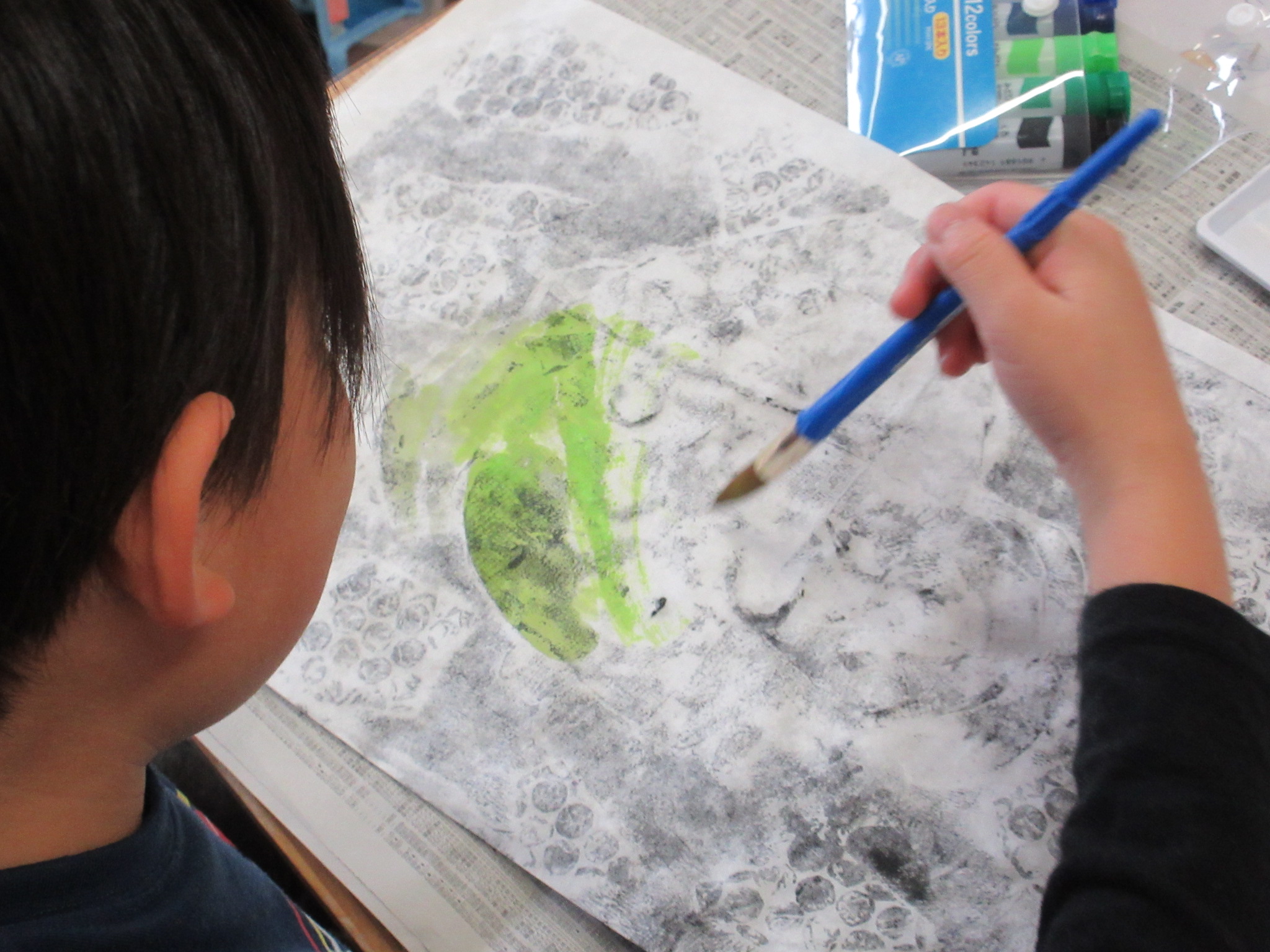 バレンで一生懸命こすり、上手に写し取れた時の子どもたちの笑顔が最高でした。