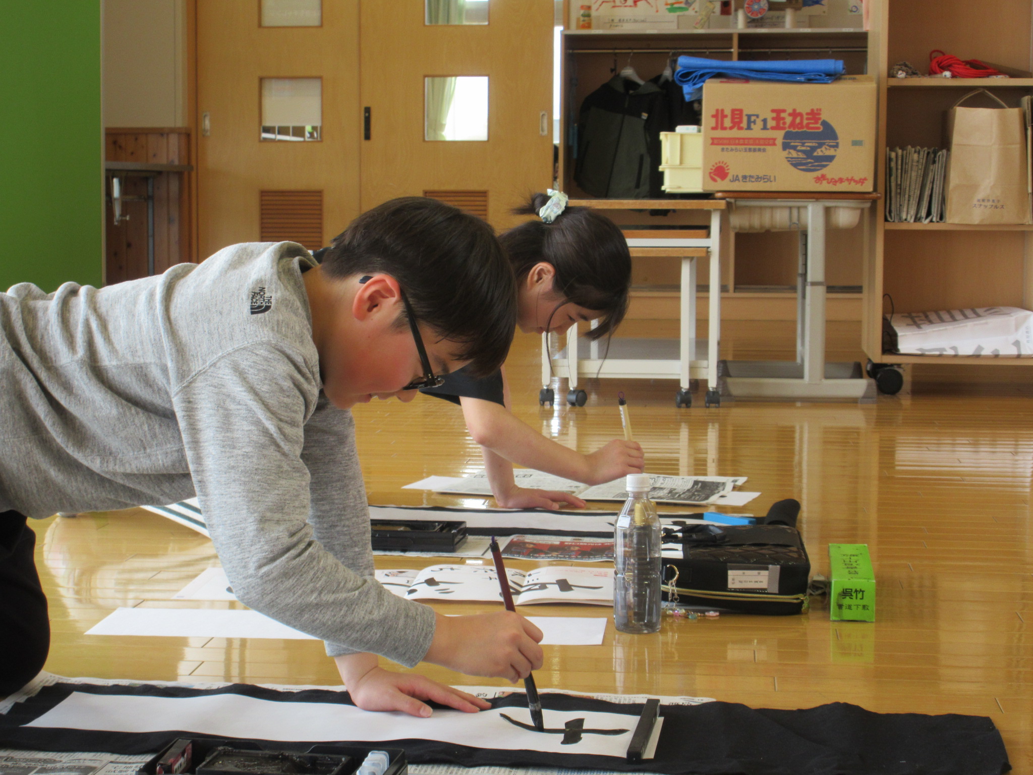 いつもより長い半紙に「友だち」の3文字を一生懸命書いていました。