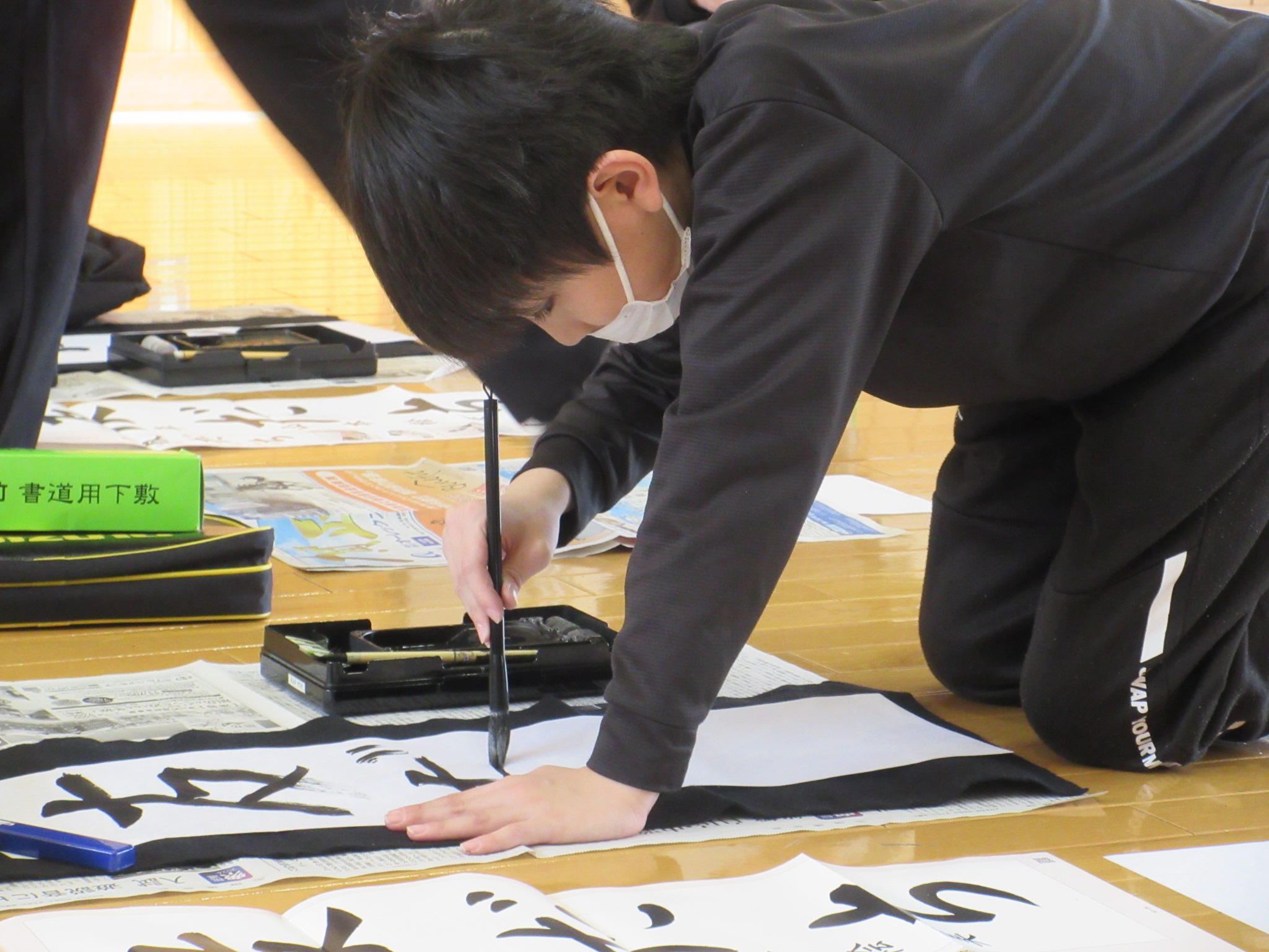 3年生が1階ホールで書き初めにチャレンジしていました。
