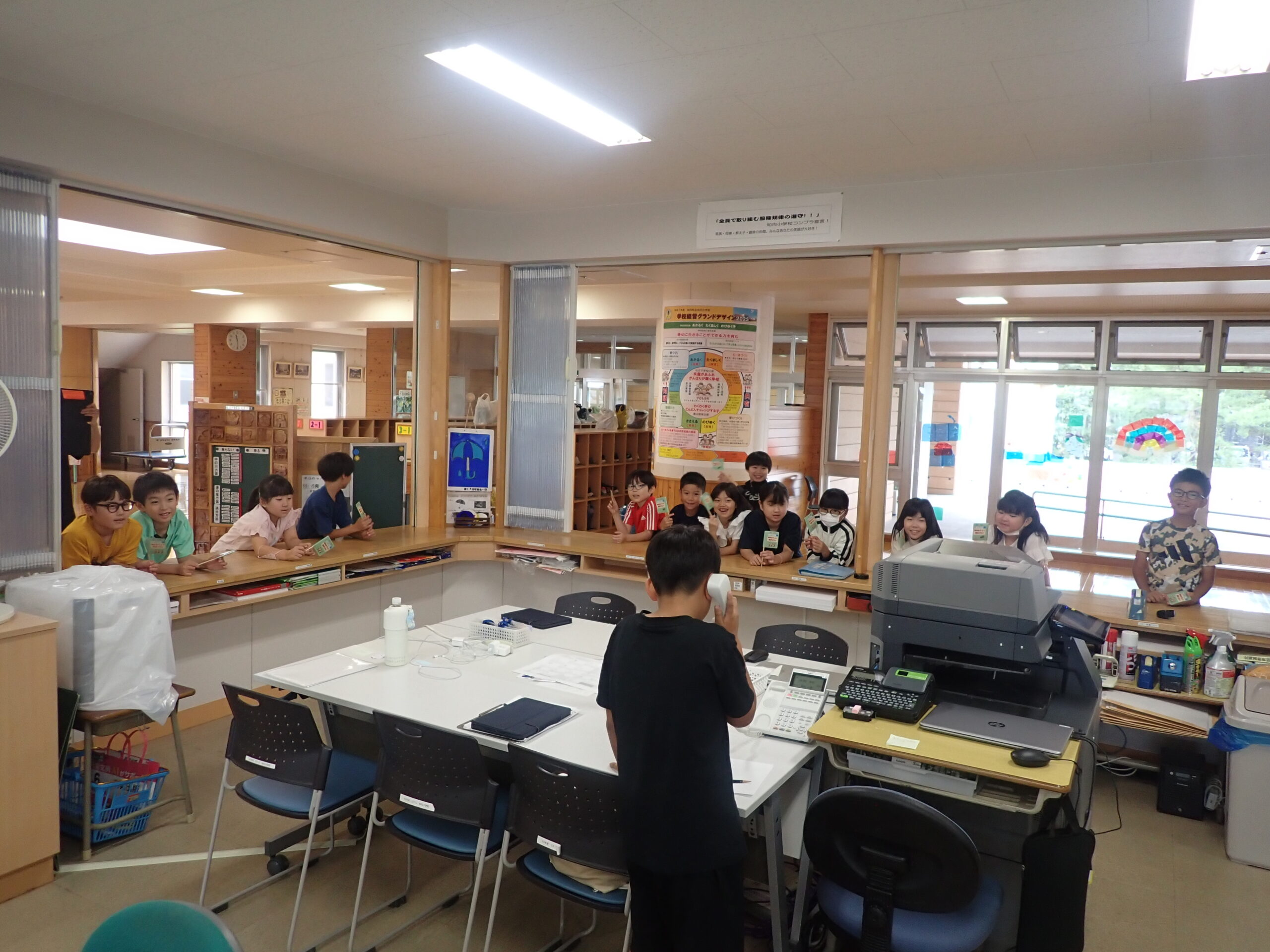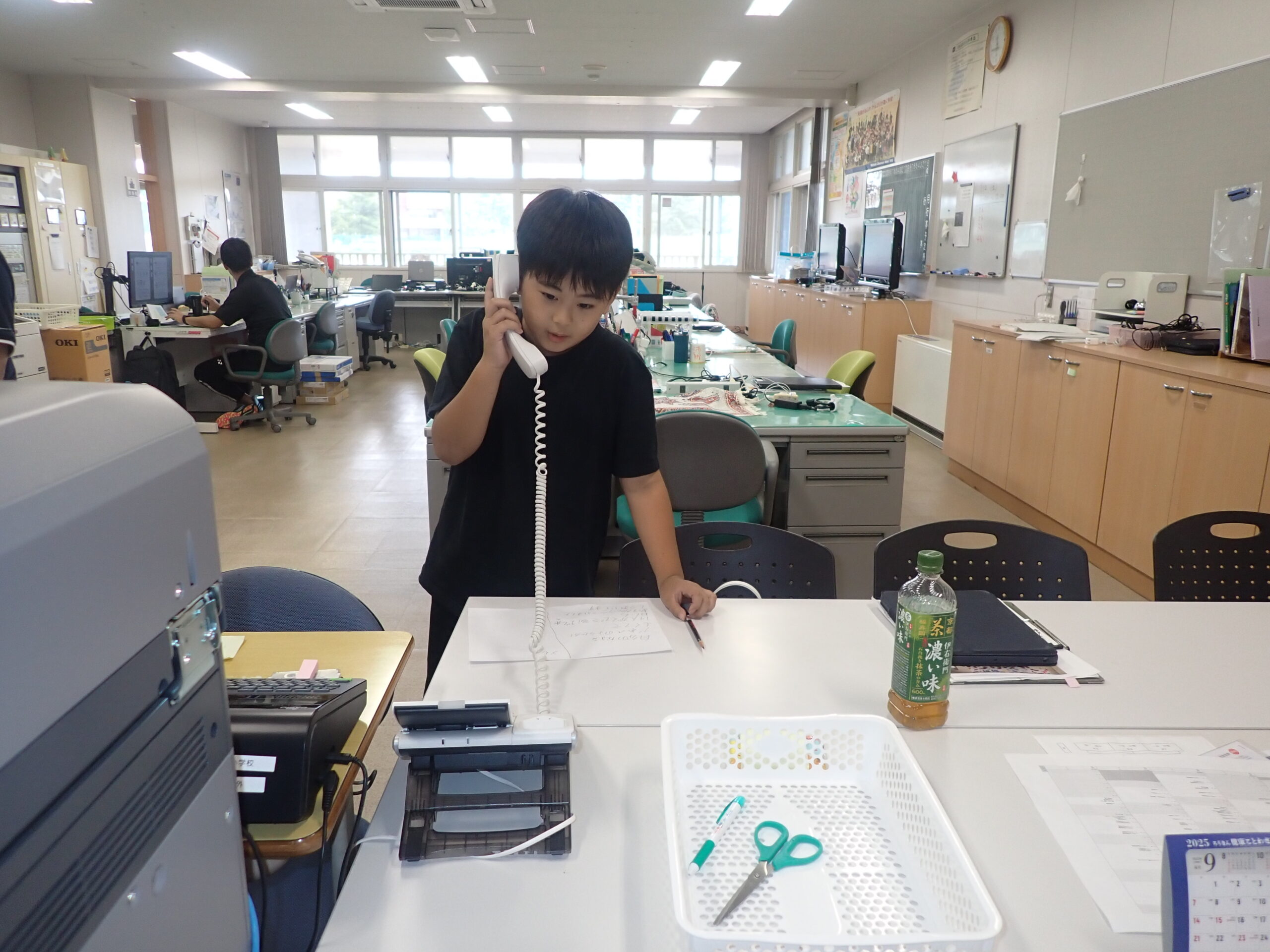 3年生は今社会科で「知内みりょく深ぼり隊」としてニラのことを深堀ろうとしています。今日は、ニラ農家さんに見学ができるかどうか、役場に聞いてみることにしました!電話をかける役を応援隊が見守っています。