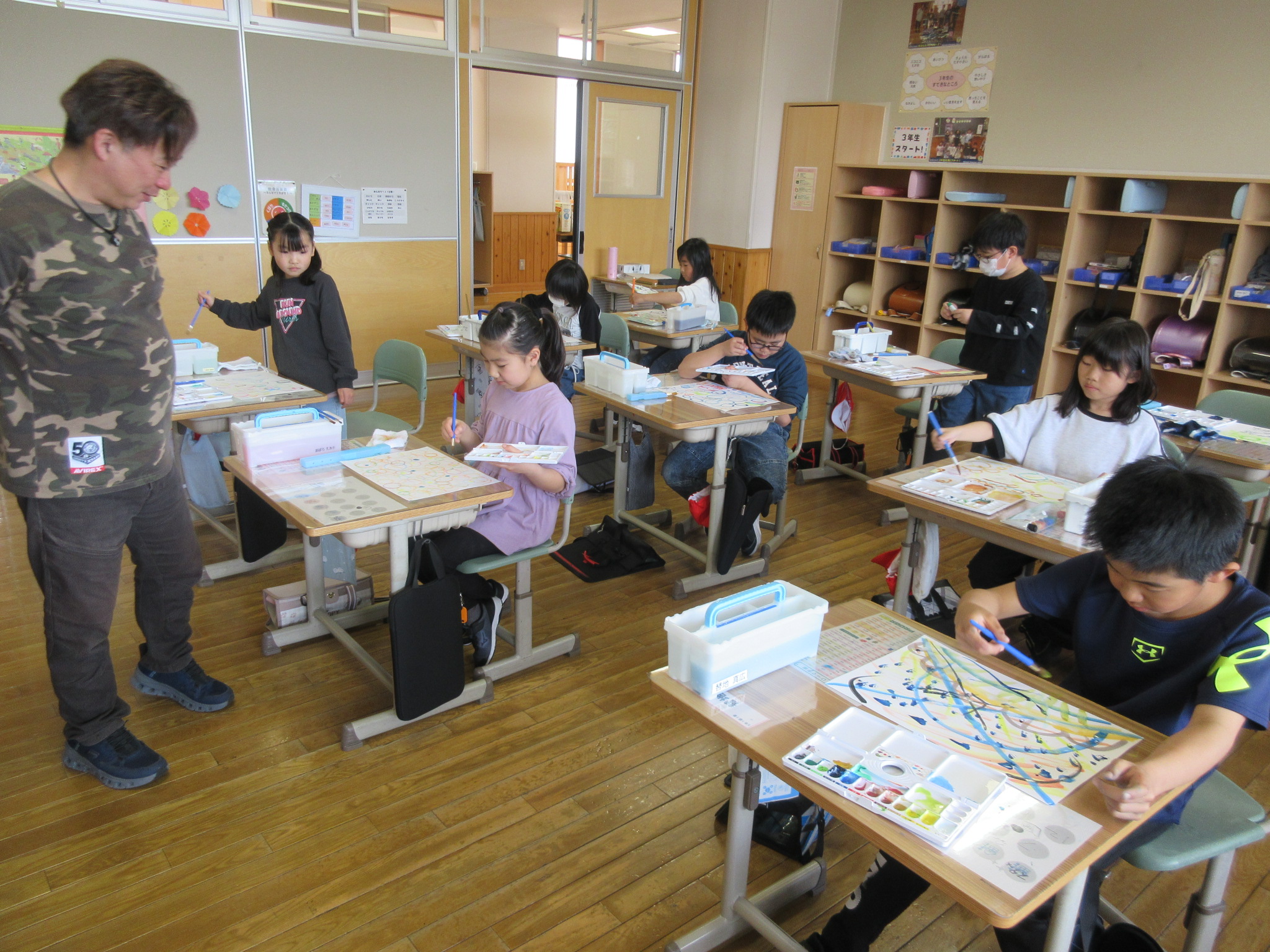 3年生は図工で「絵の具」の学習をしました。絵の具を混ぜ合わせ、水の量を調整し、様々な太さの筆で模様を作りました。