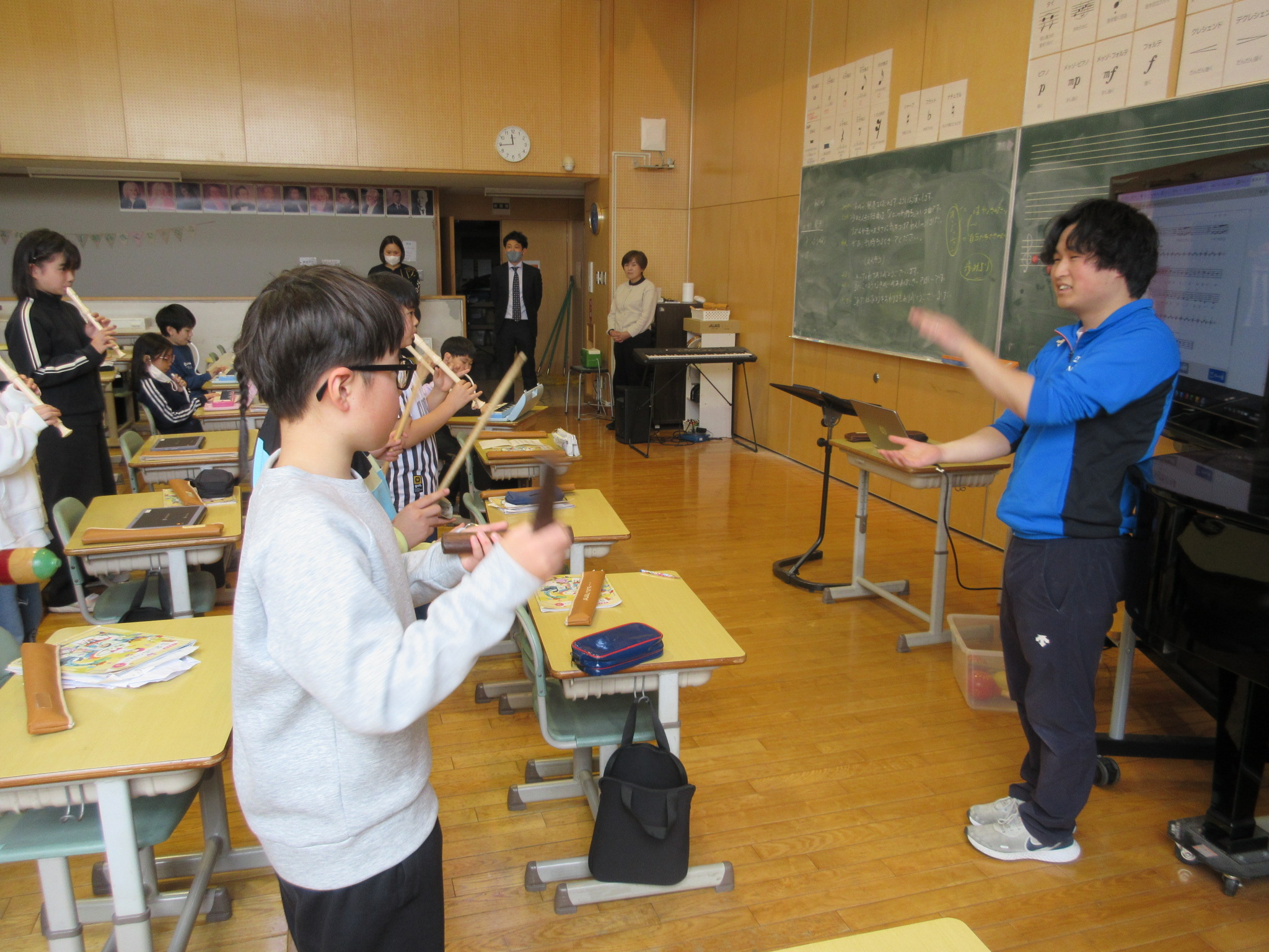 3年生最後の音楽の時間に、先生方を招待しての音楽発表会を開きました。