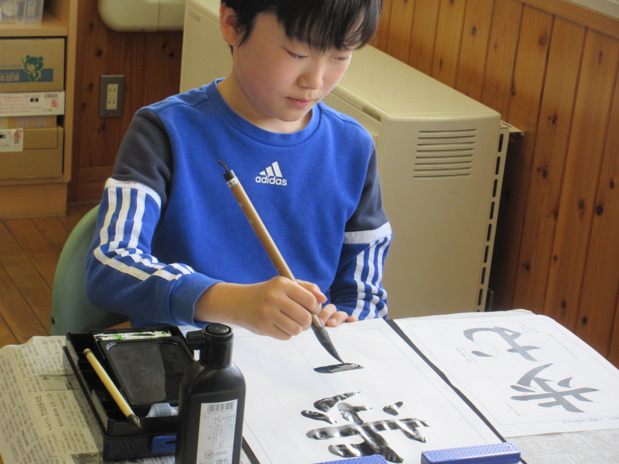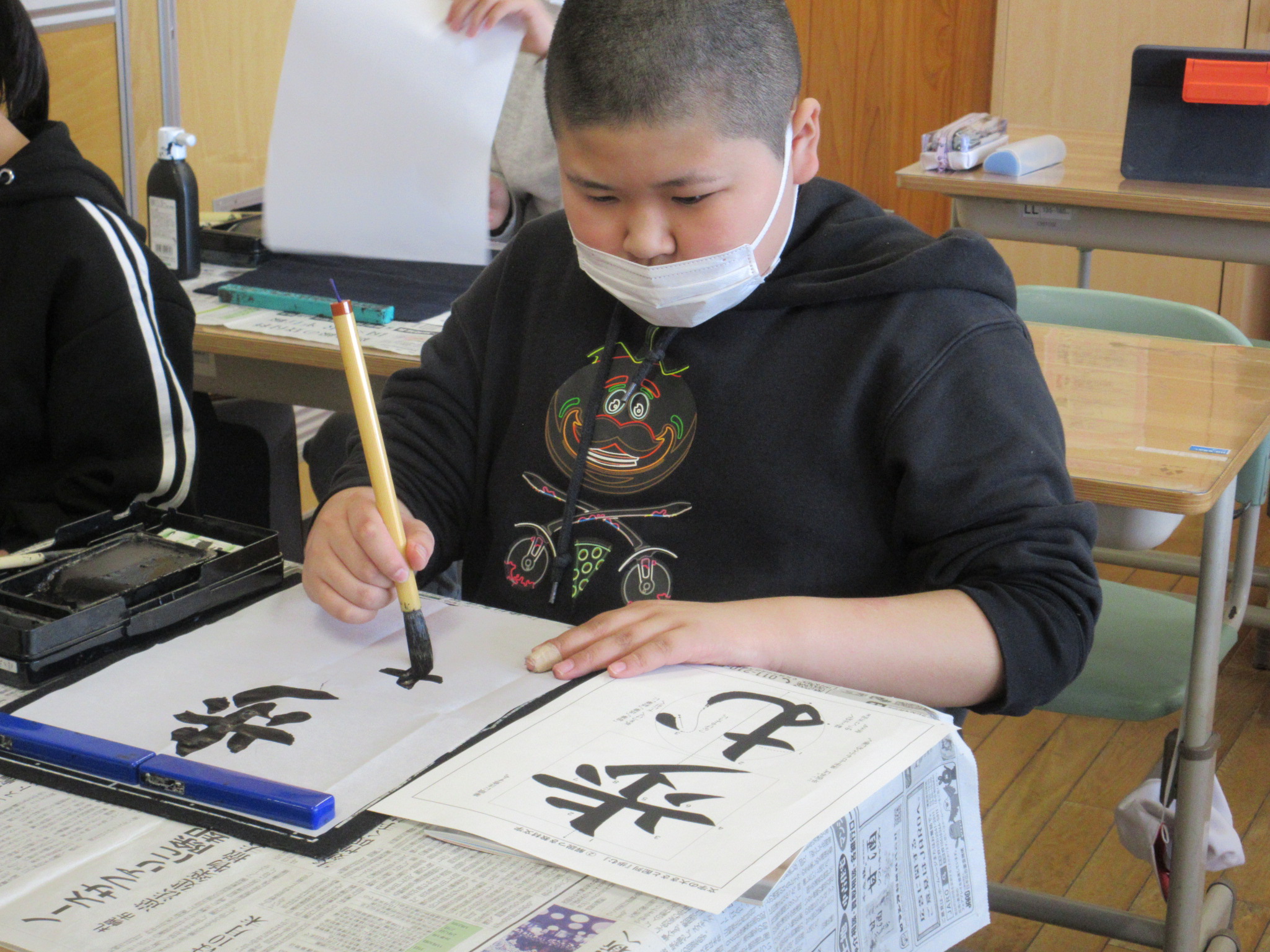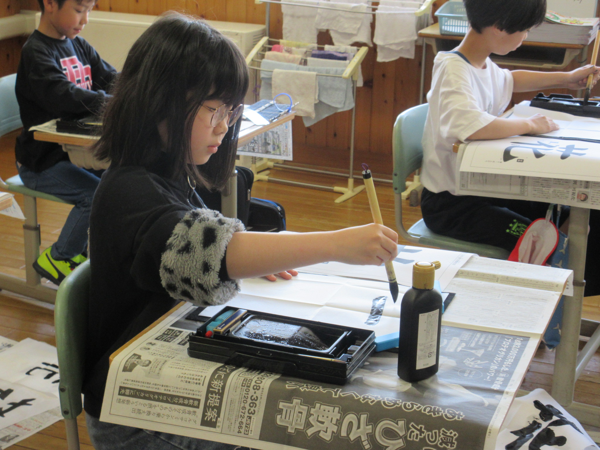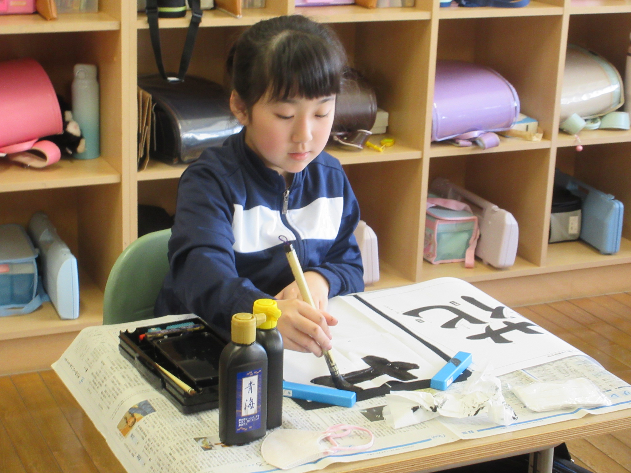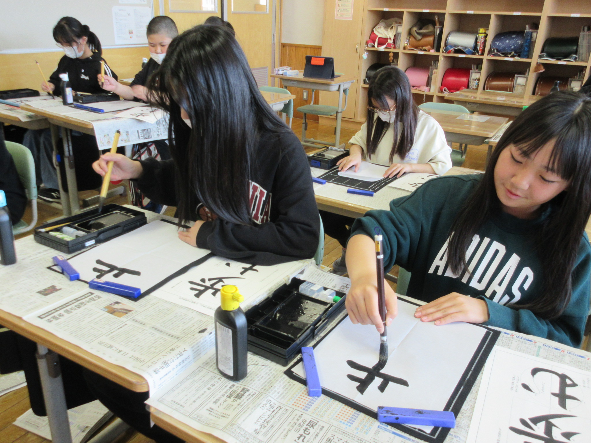 6年生は「歩む」でした。どの子も集中して、半紙の時に向き合っていました。