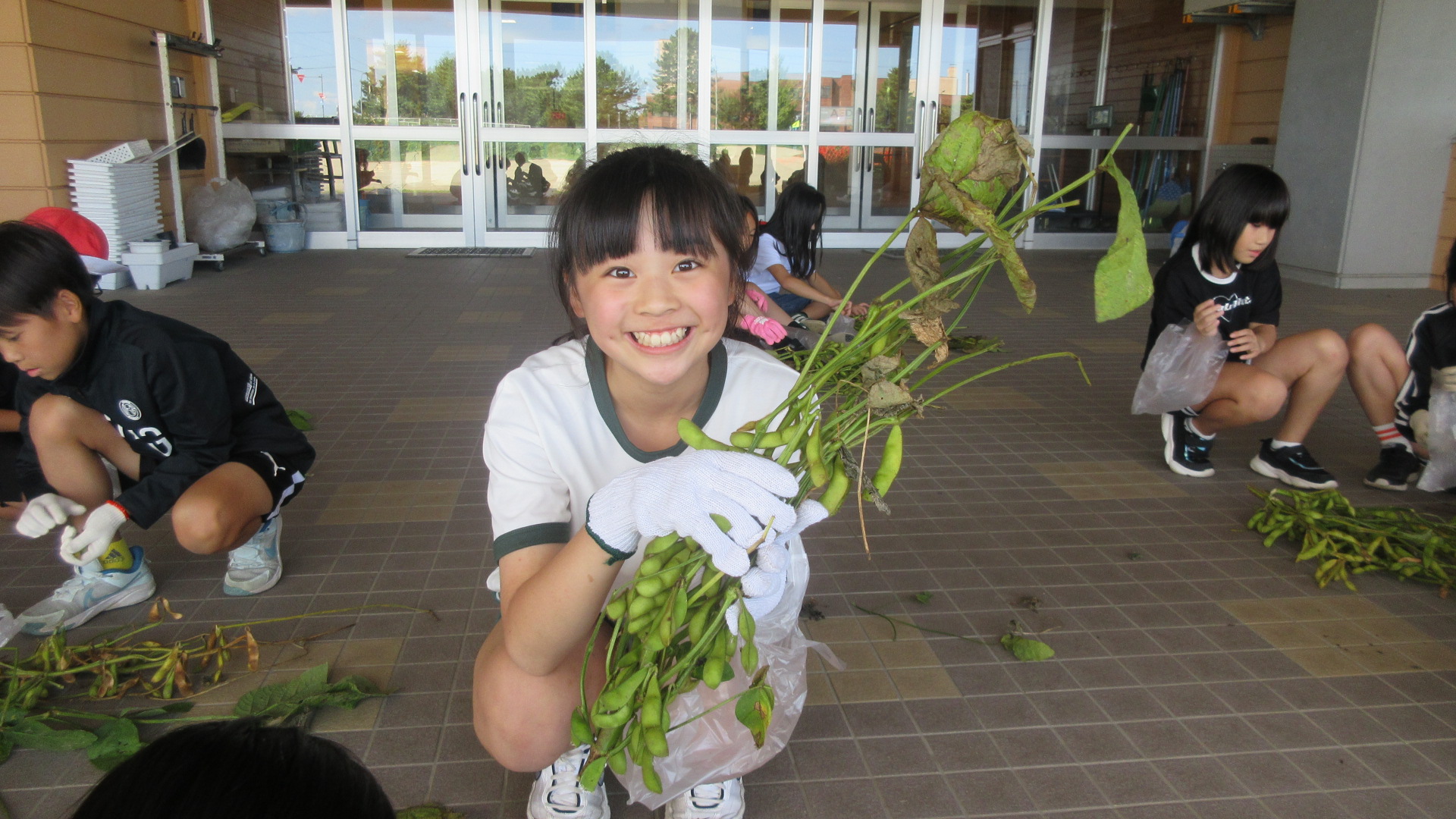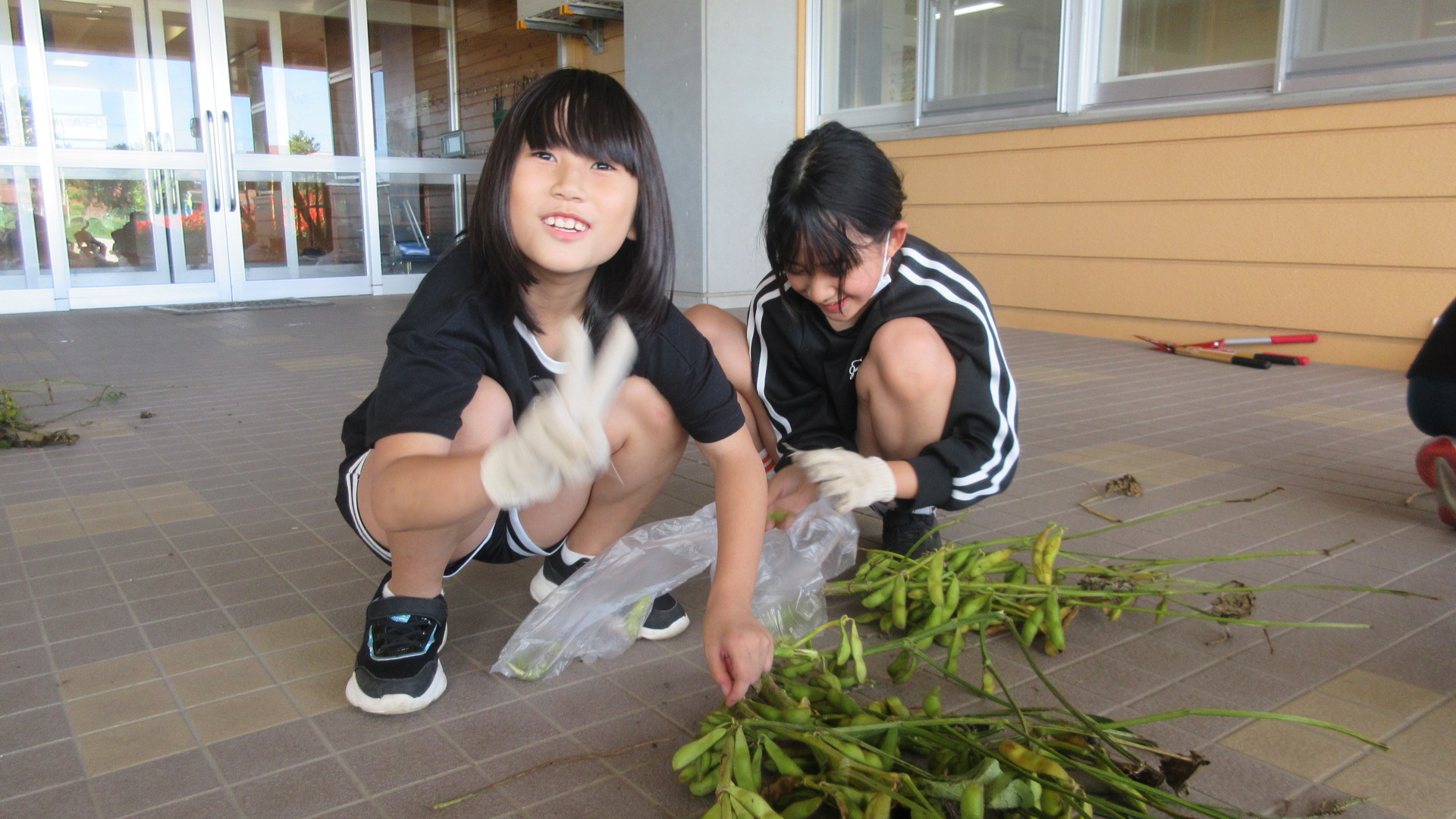 4年生が、春にJAの皆様と植えた えだまめの収穫をしました。