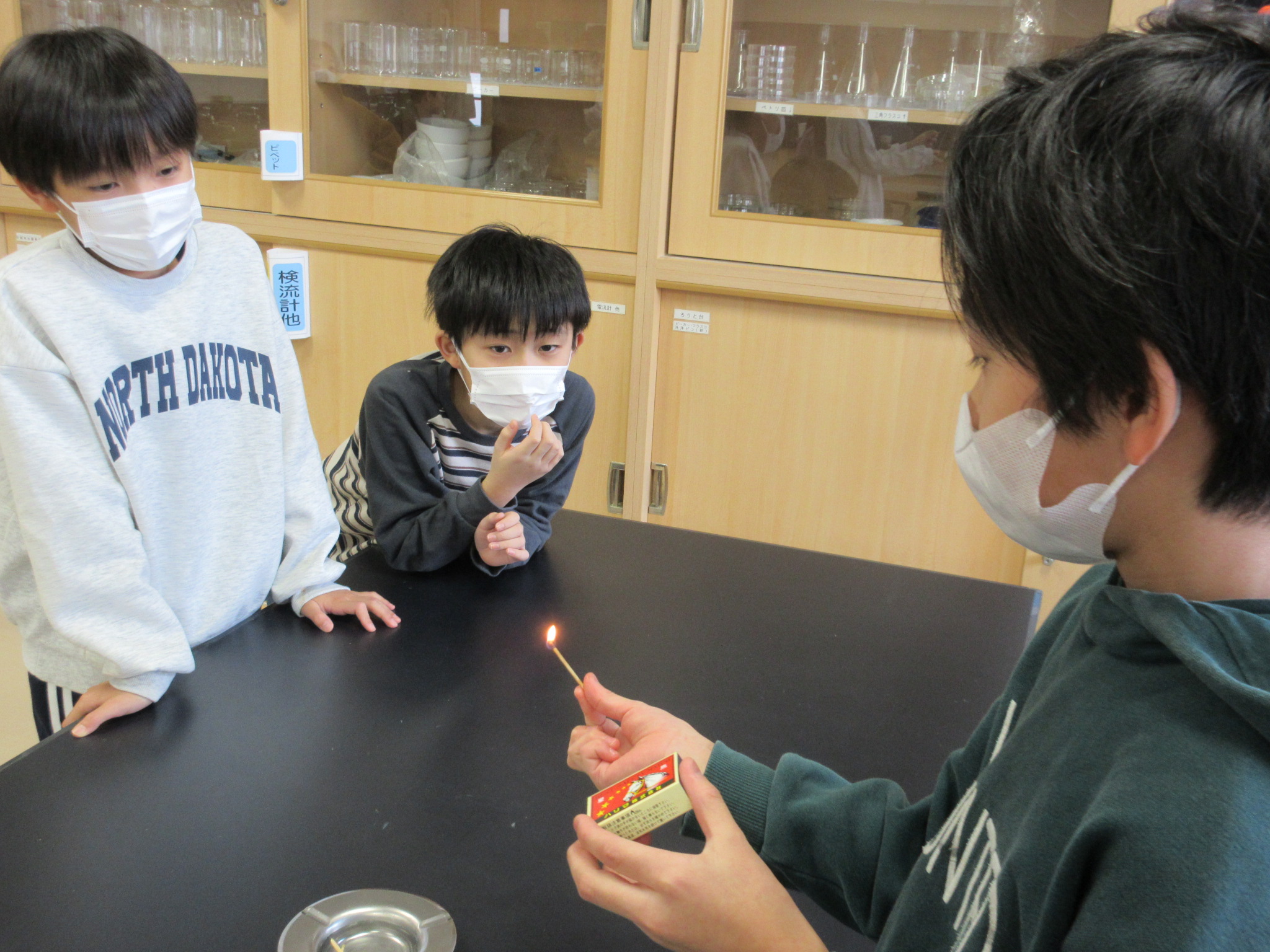 今の理科の学習では、アルコールランプを使わず、ガスコンロを使うことが主流です。また、日常生活でも使うことがなくなっているマッチで火をつける経験をしました。