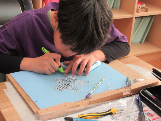 みんな刃先に気をつけながら上手に彫り進めていました。あっという間に彫り上げてしまう子もいました。