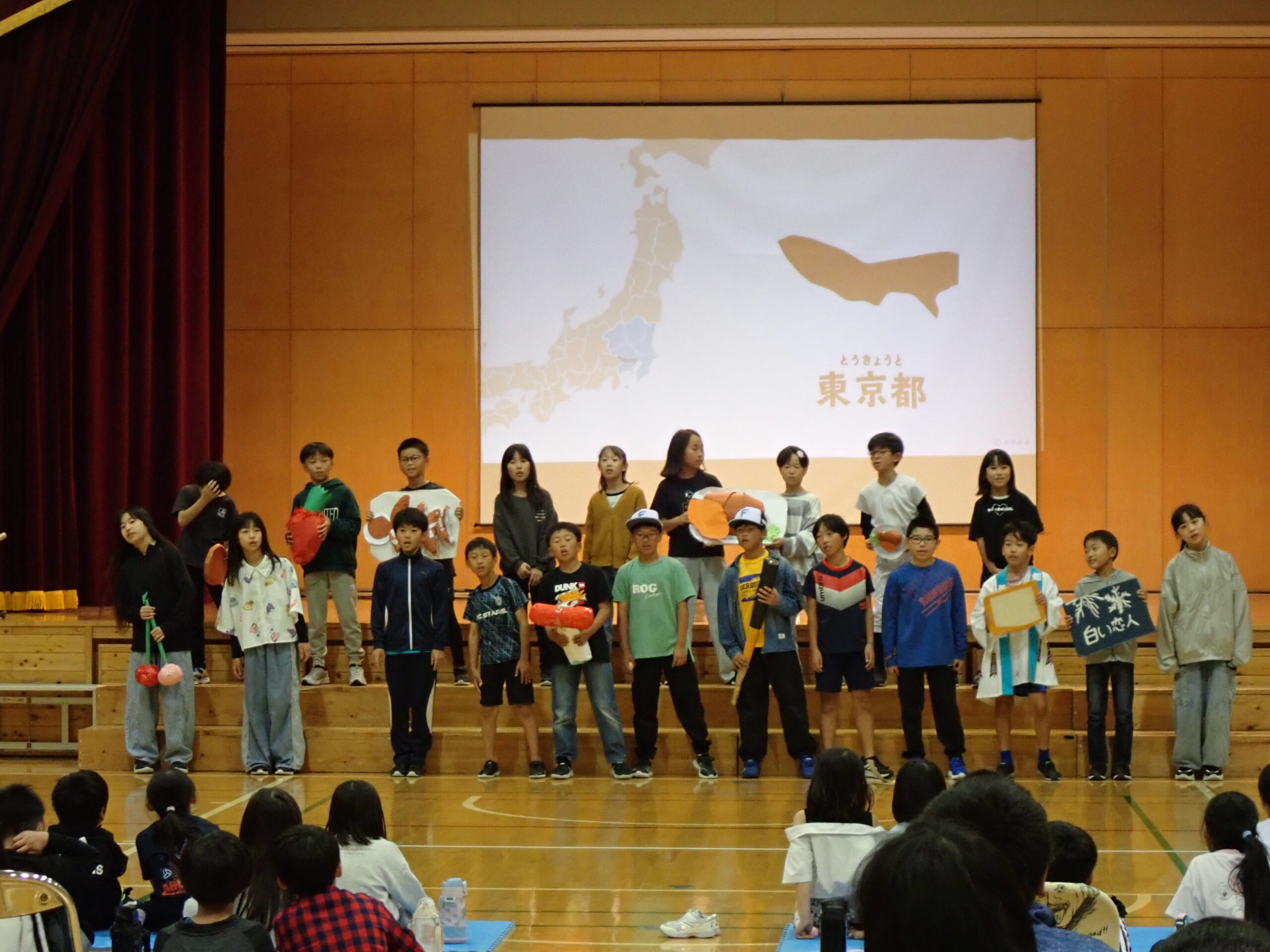4年生は「知り小★4年レストラン」。ゲストの野球選手が日本各地を紹介する番組仕立てになっています。