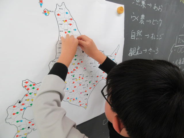 4年生は、社会で「特色ある地域と人々のくらし」の学習をしています。北海道の179市町村には、どのような特色があるのかを調べていました。