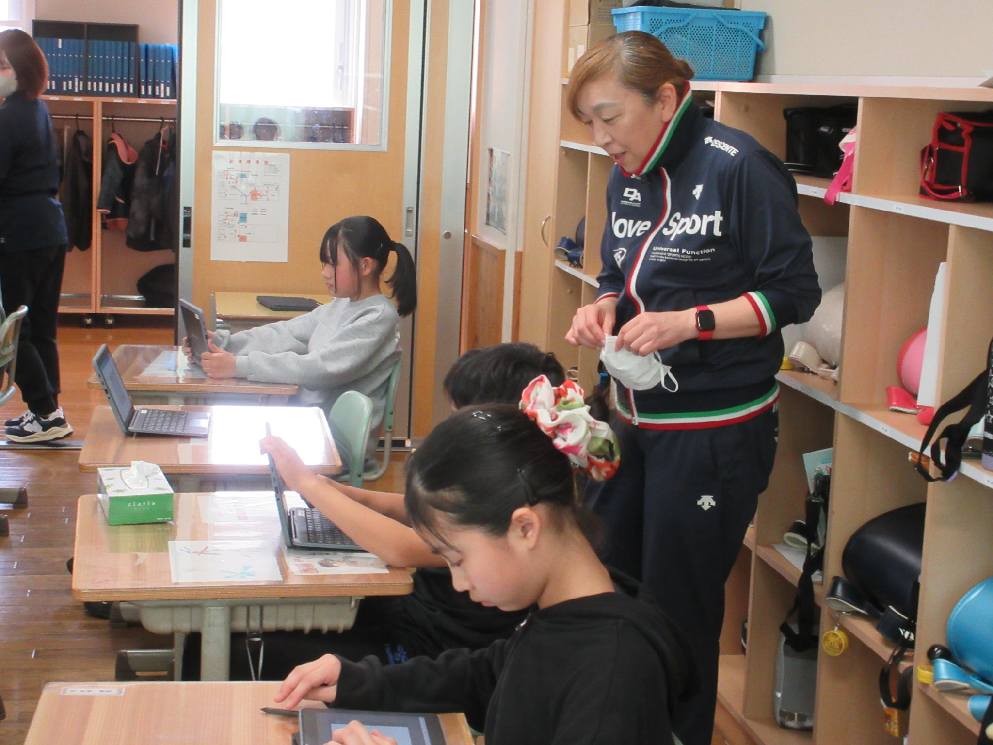 本校では、「全ての児童をすべての教職員で見守る」ことを経営の基本姿勢としています。5・6年生では、図工と家庭科の時間に担任が入れ替わって子どもたちの学びをサポートしています。