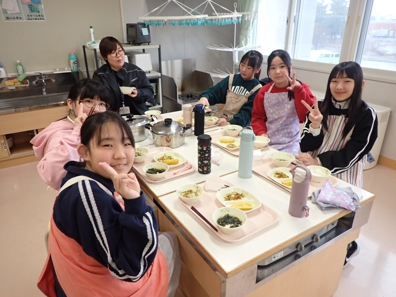 ごはんは、どの班もふっくら、つやつやに炊き上げることができました。また、みそ汁は班ごとに具を工夫して、とても上手に作ることができました。