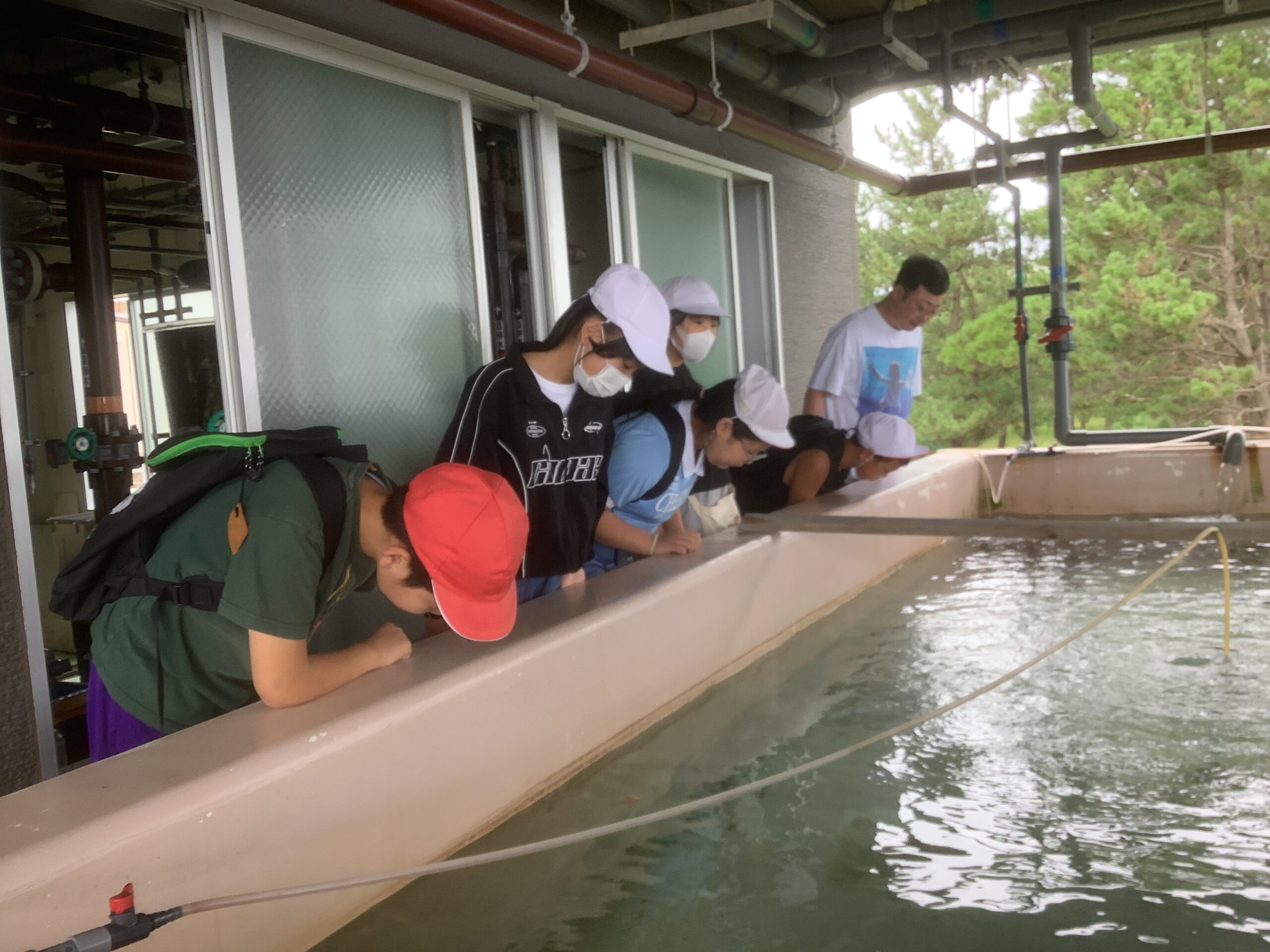 その後、ウニの育成施設に移動、見学しました。小さな小さなウニを見つけるのが一苦労だったようです。漁業は町の基幹産業です。町の良さや漁業の大変さを学んだ貴重な機会となりました。関係する皆様に感謝いたします。