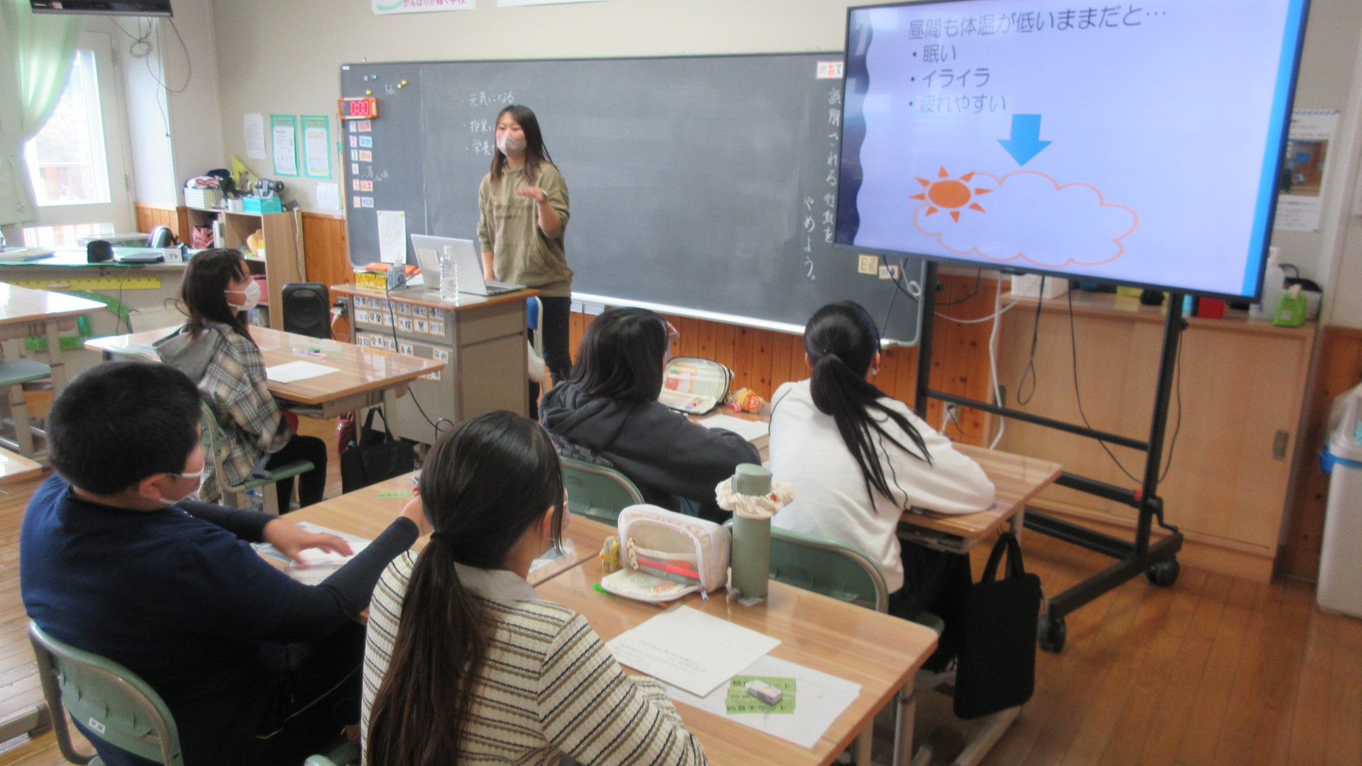 知内町の栄養教諭の南部先生が来て、5年生に食べることの大切さ(食育)の学習をしてくださいました。5年生は、「バランスのよい朝ごはんを考えよう」を課題に、朝ごはんの大切さについて学びました。