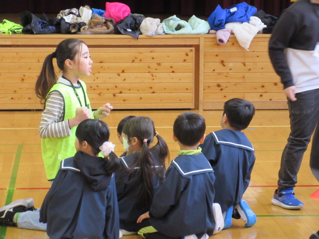5年生は、新1年生にグループを上手に作れるよう声をかけたり、仲間に誘ったりしていました。