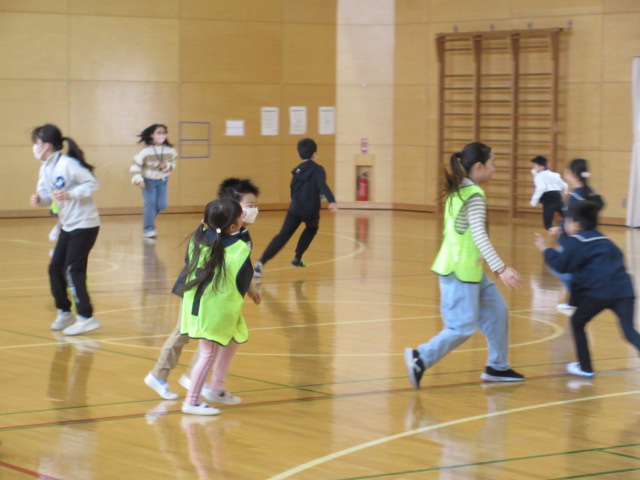 次は、助けオニをしました。新1年生もオニになって活躍していました。