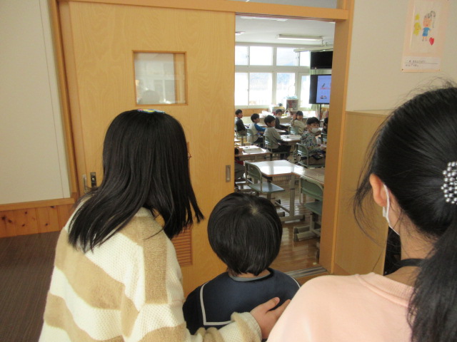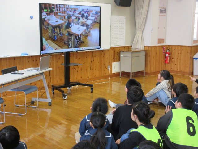 その後、学びルームに移動して、ビデオを見ながら、小学校生活について学びました。みんな真剣な表情で見ていました。