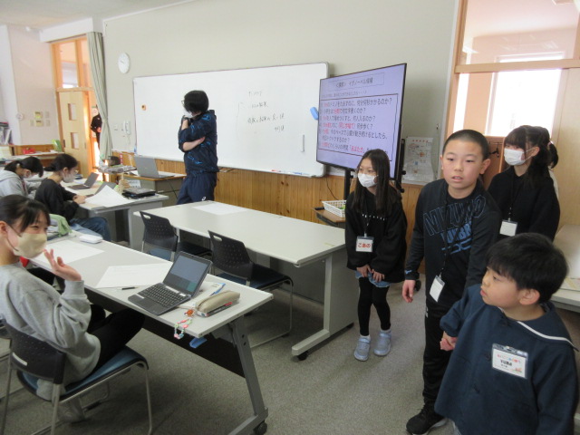 来年入学する新1年生が、小学校生活を体験するためにやってきました。知内小学校では、毎年来年最上級生になる5年生が体験入学を企画して行っています。