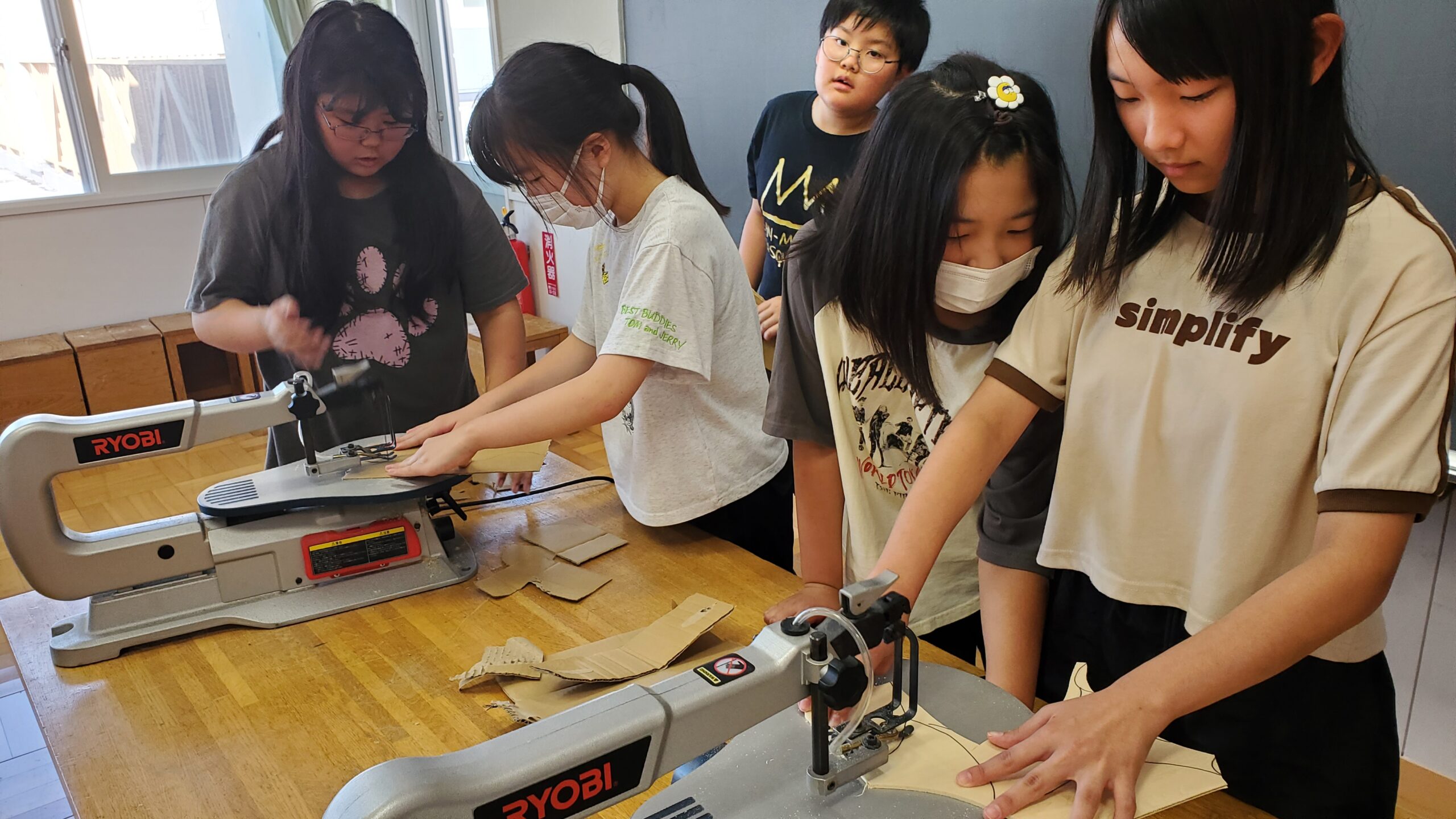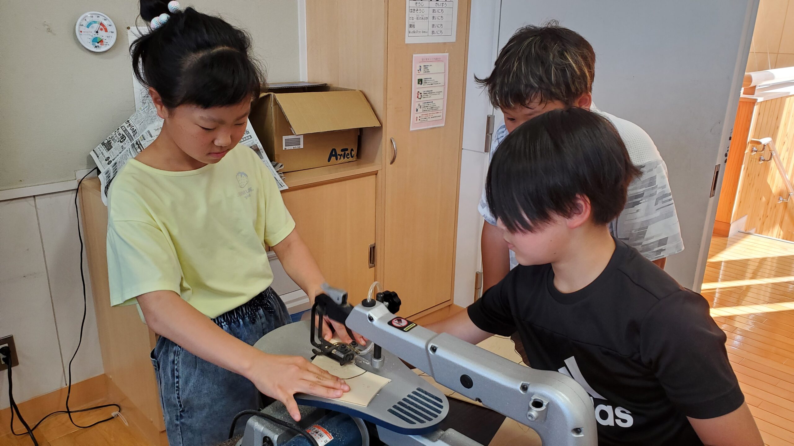 友だちと協力して糸のこをやっていました。板が思ったように動かすのが一番大変だったようです。
