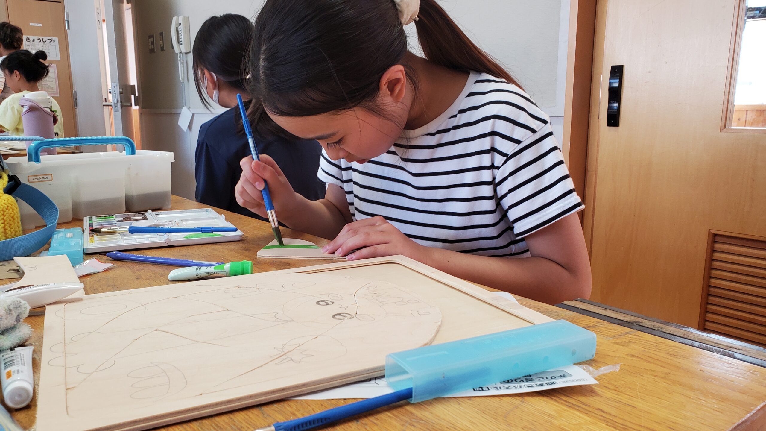 紙やすりを動かすのが大変で、腕を休めながら一生懸命がんばっていました。