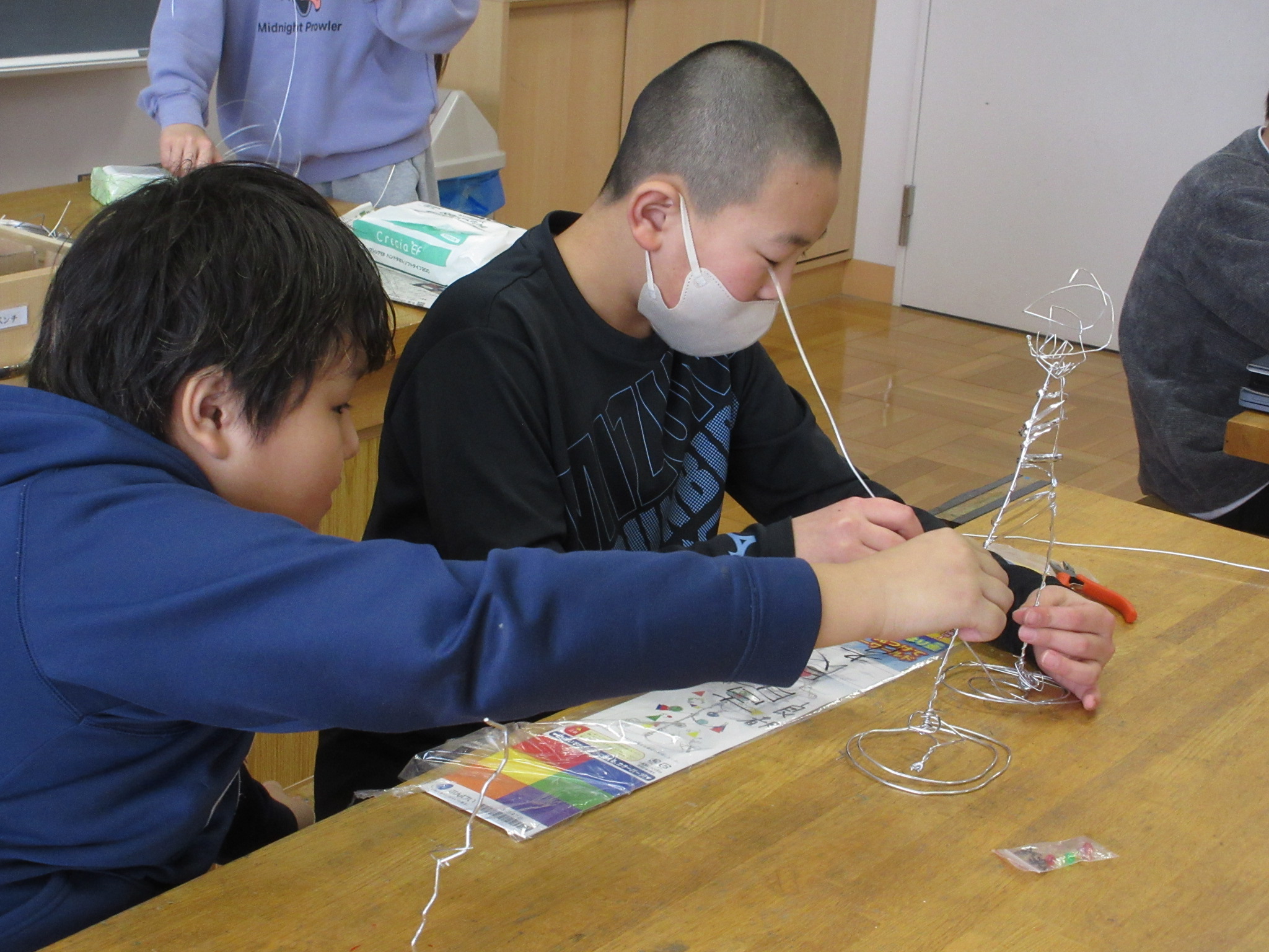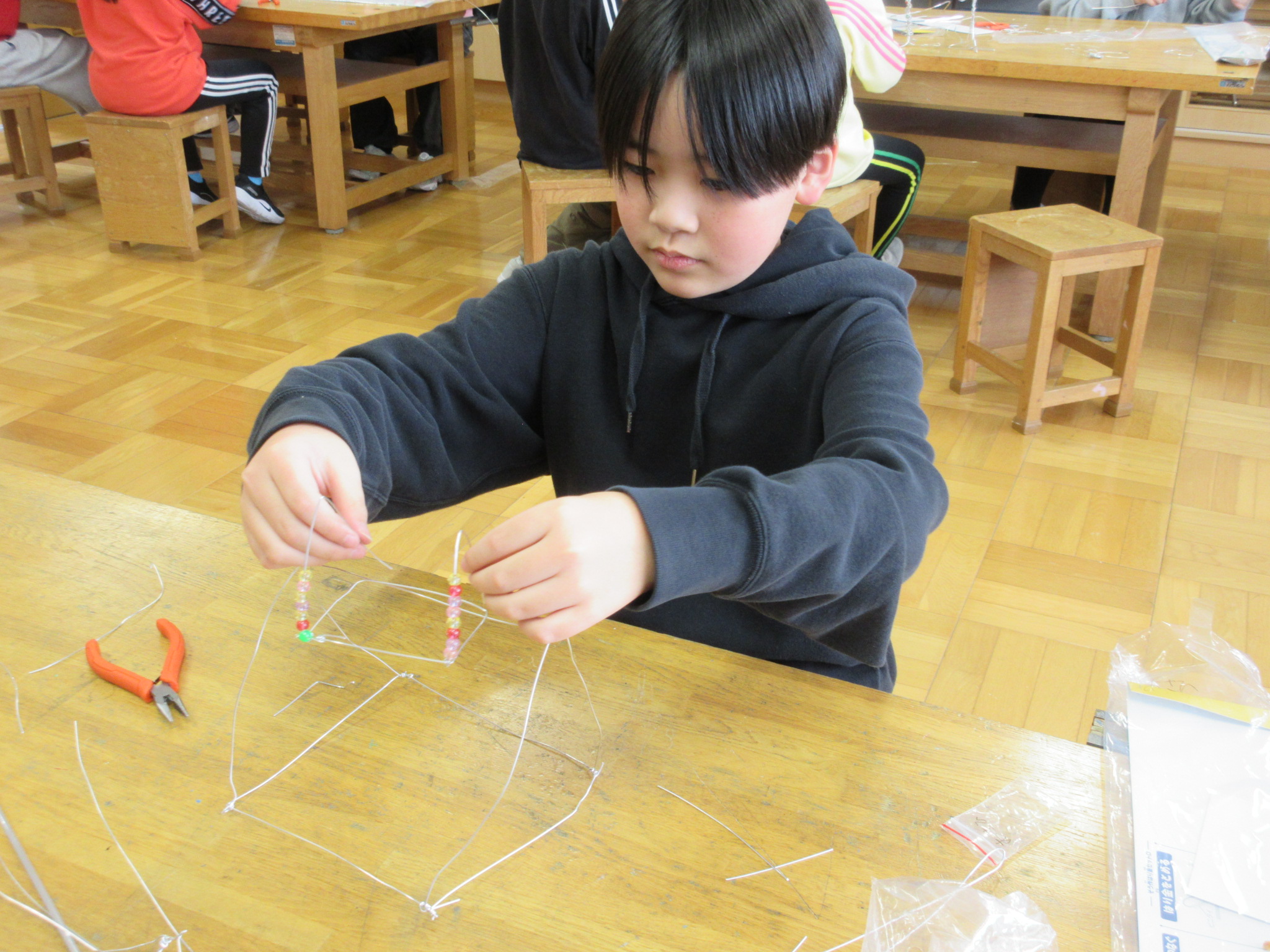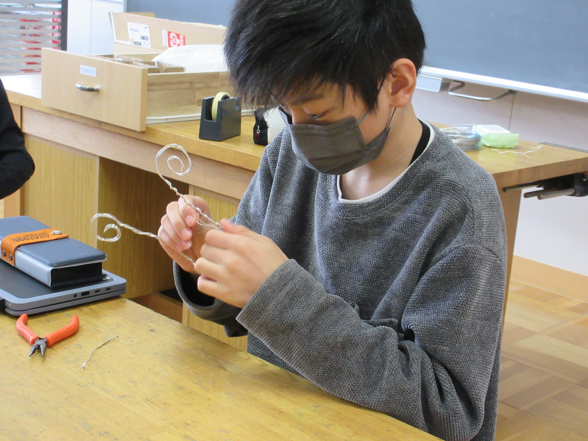 はり金で立体物を作り、しかもそれが自立する工作です。